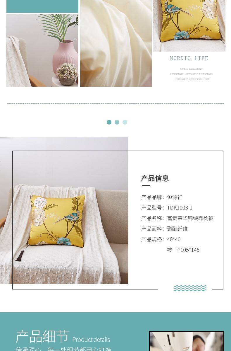 恒源祥(HYX) 恒源祥礼业TDK1003-1富贵荣华锦缎靠垫被 富贵荣华 40*40