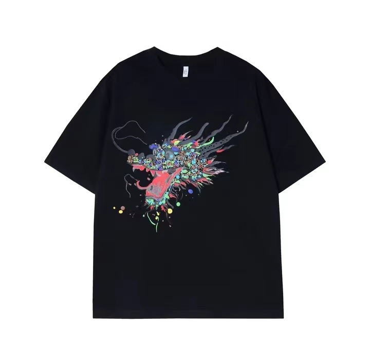 T579春夏新品男士T恤宽松圆领时尚潮牌百搭夏季半袖卡通印花个性潮流