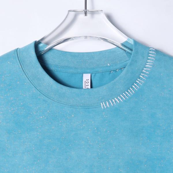 T3297夏季高级感新款韩系满天星撞色缝线短袖T恤情侣简约百搭圆领上衣