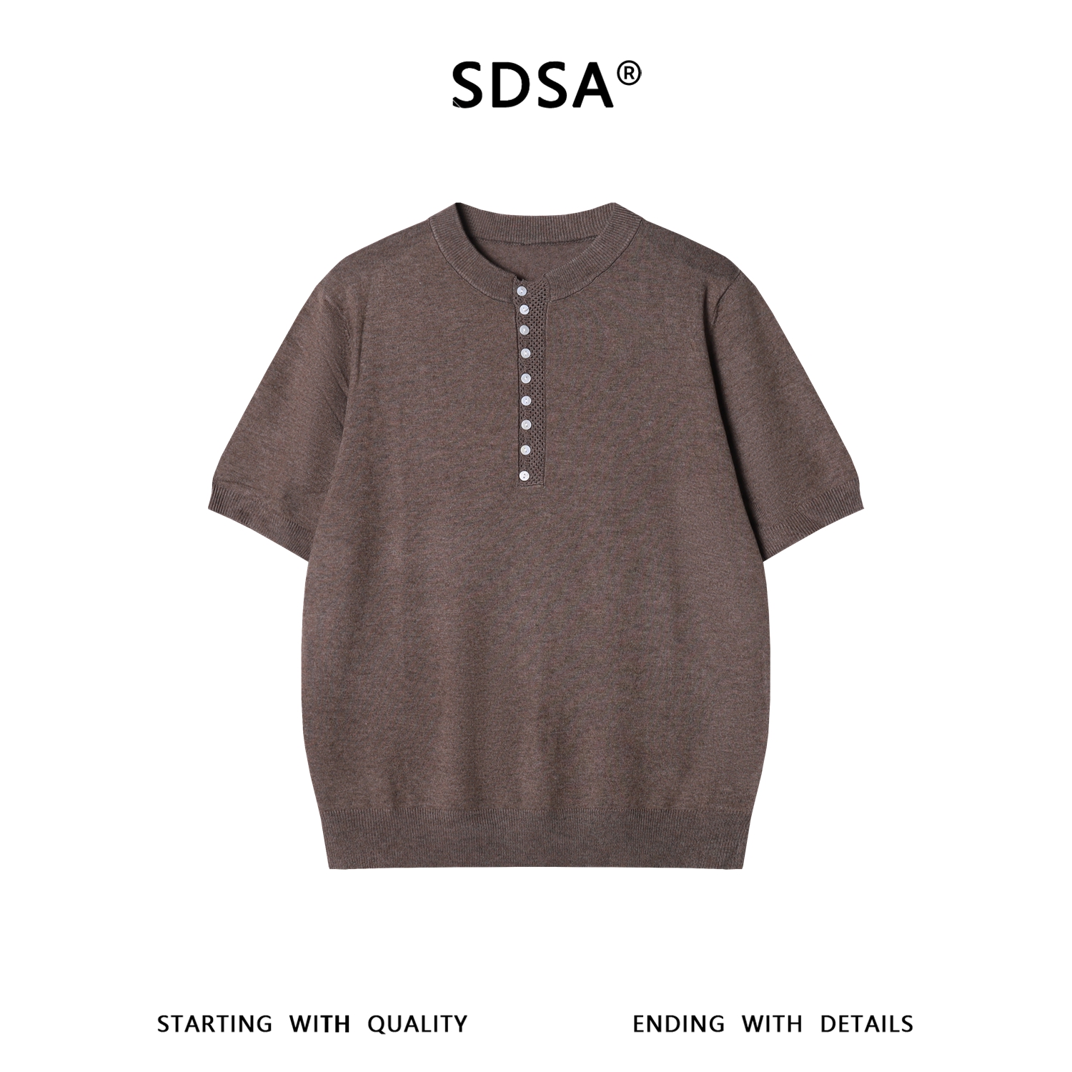 SDSA男装2026新款高贵轻奢美式复古拼接半纽扣短袖T恤休闲时尚潮