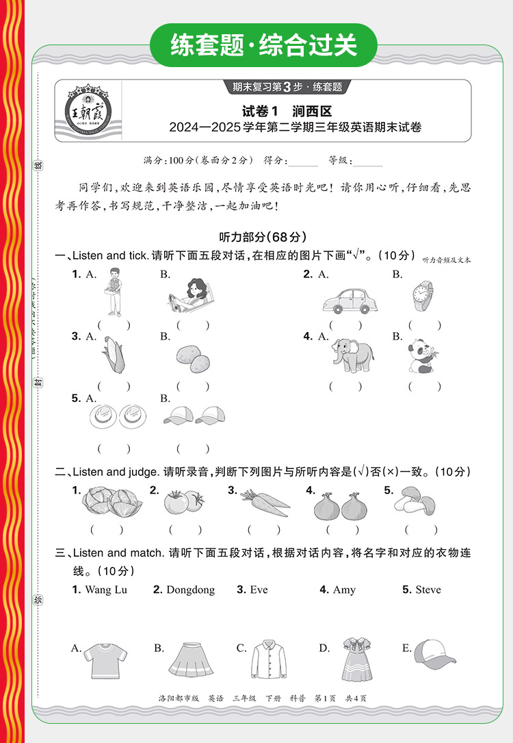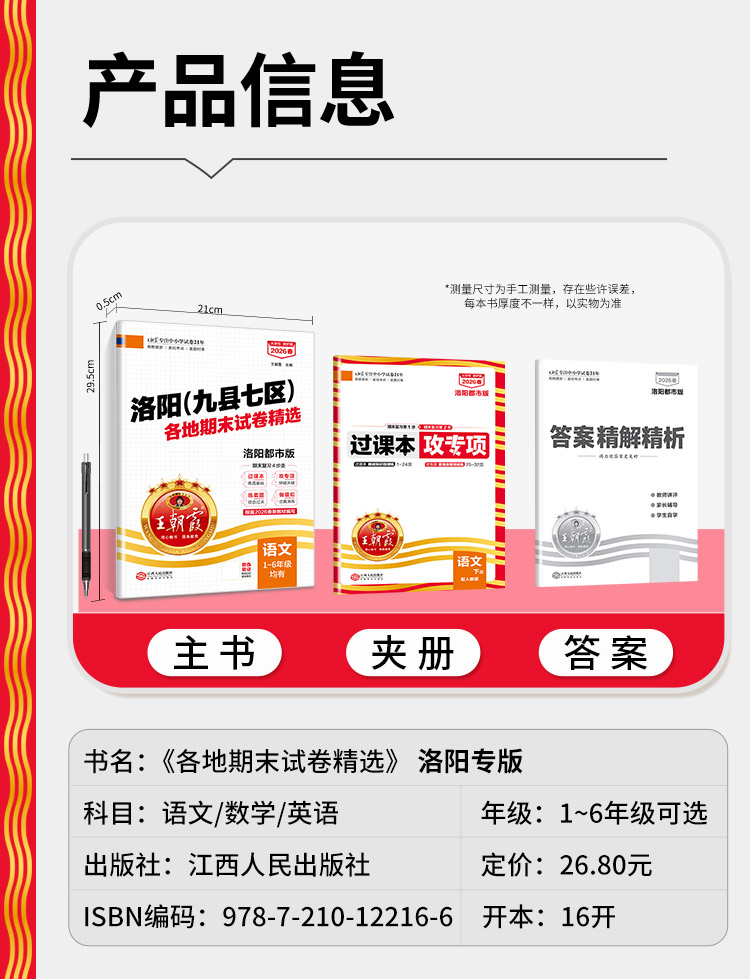 【洛阳专版】2026春下册新品王朝霞洛阳(九县七区)各地期末试卷精选1-6年级洛阳都市版语数英期末试卷