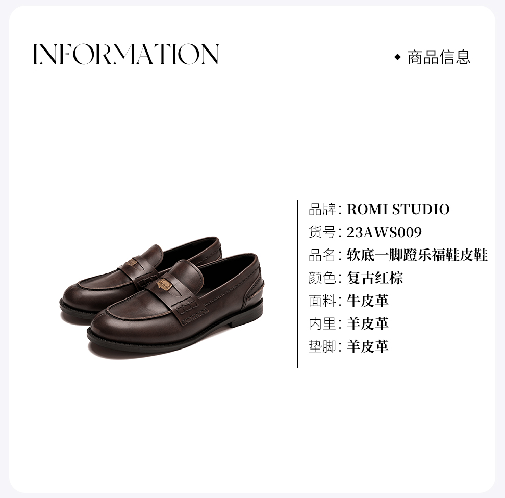ROMI STUDIO“法式复古”简约金币扣软底一脚蹬乐福鞋皮鞋 23AWS009