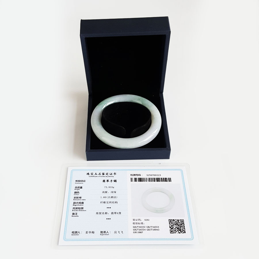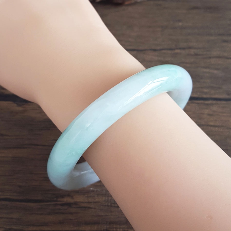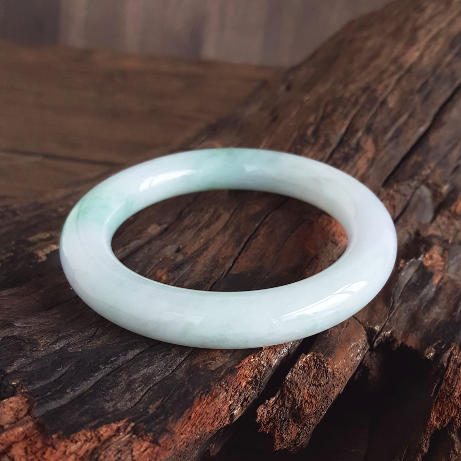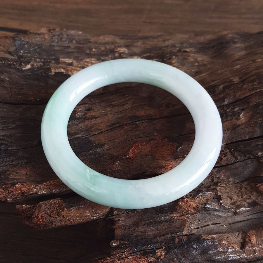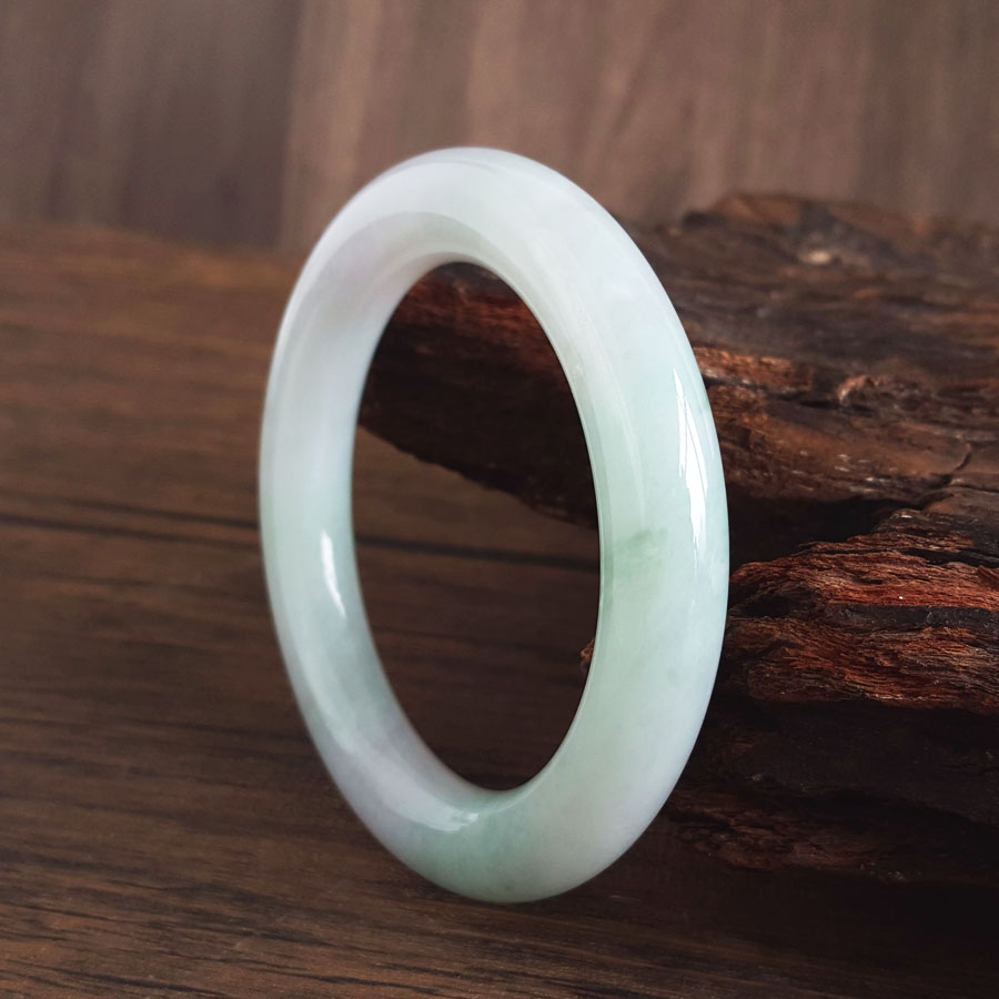 名称 | 天然细腻糯种春彩57号圆条翡翠手镯 |