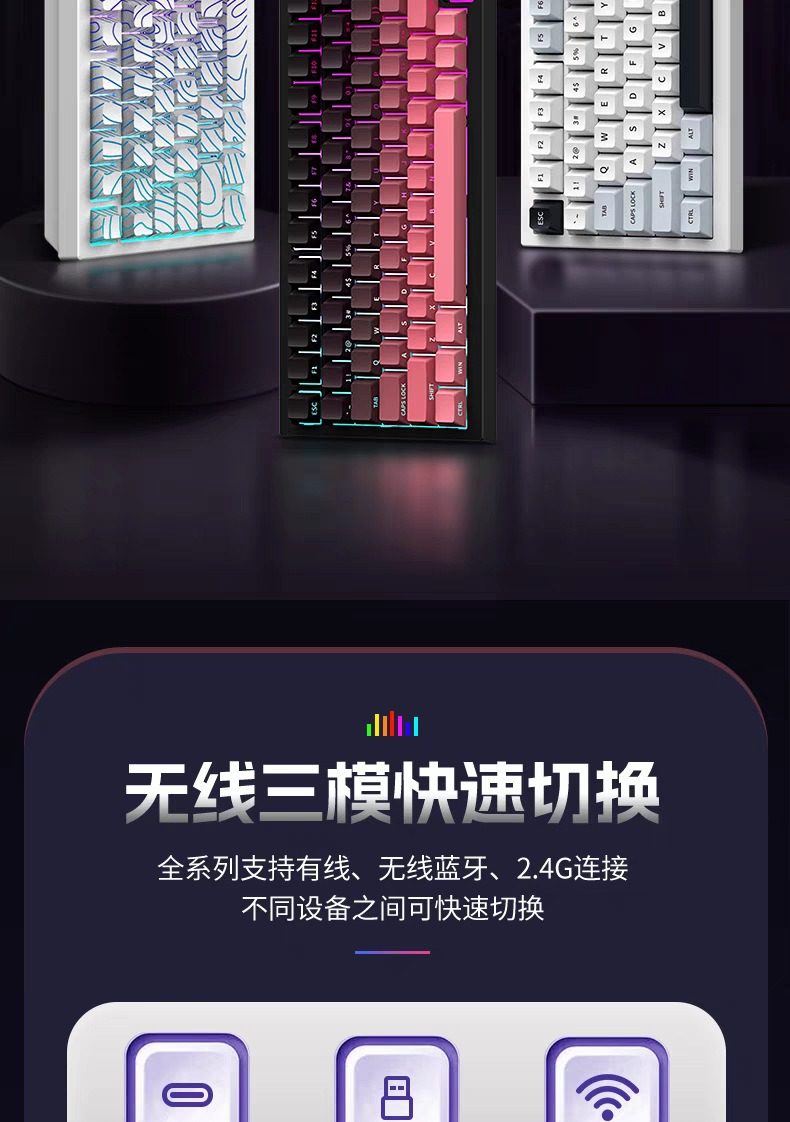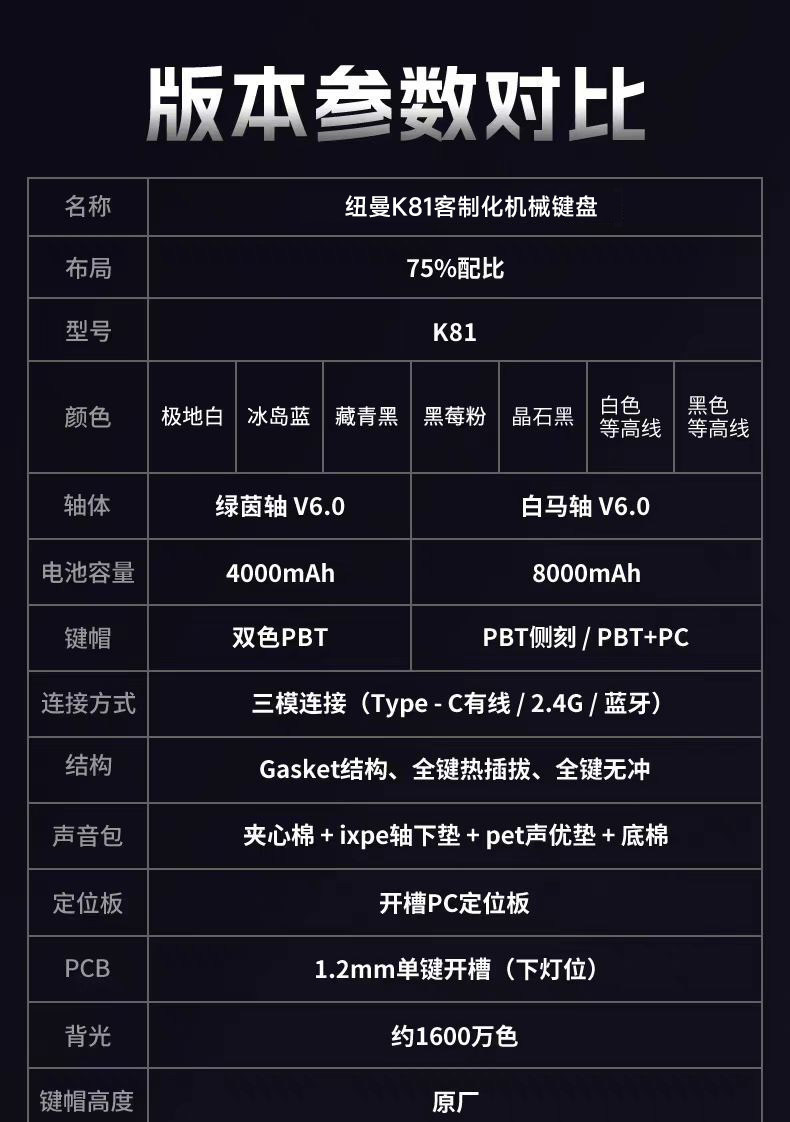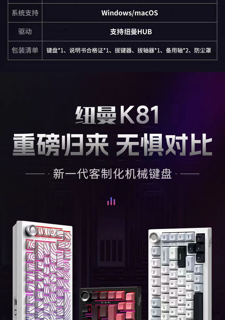 【纽曼 · K81键盘】K81客制化三模机械RGB键盘侧刻无线蓝牙办公游戏电竞