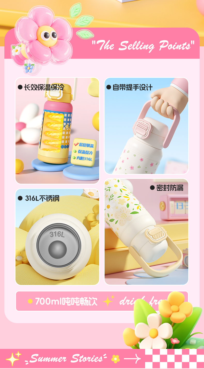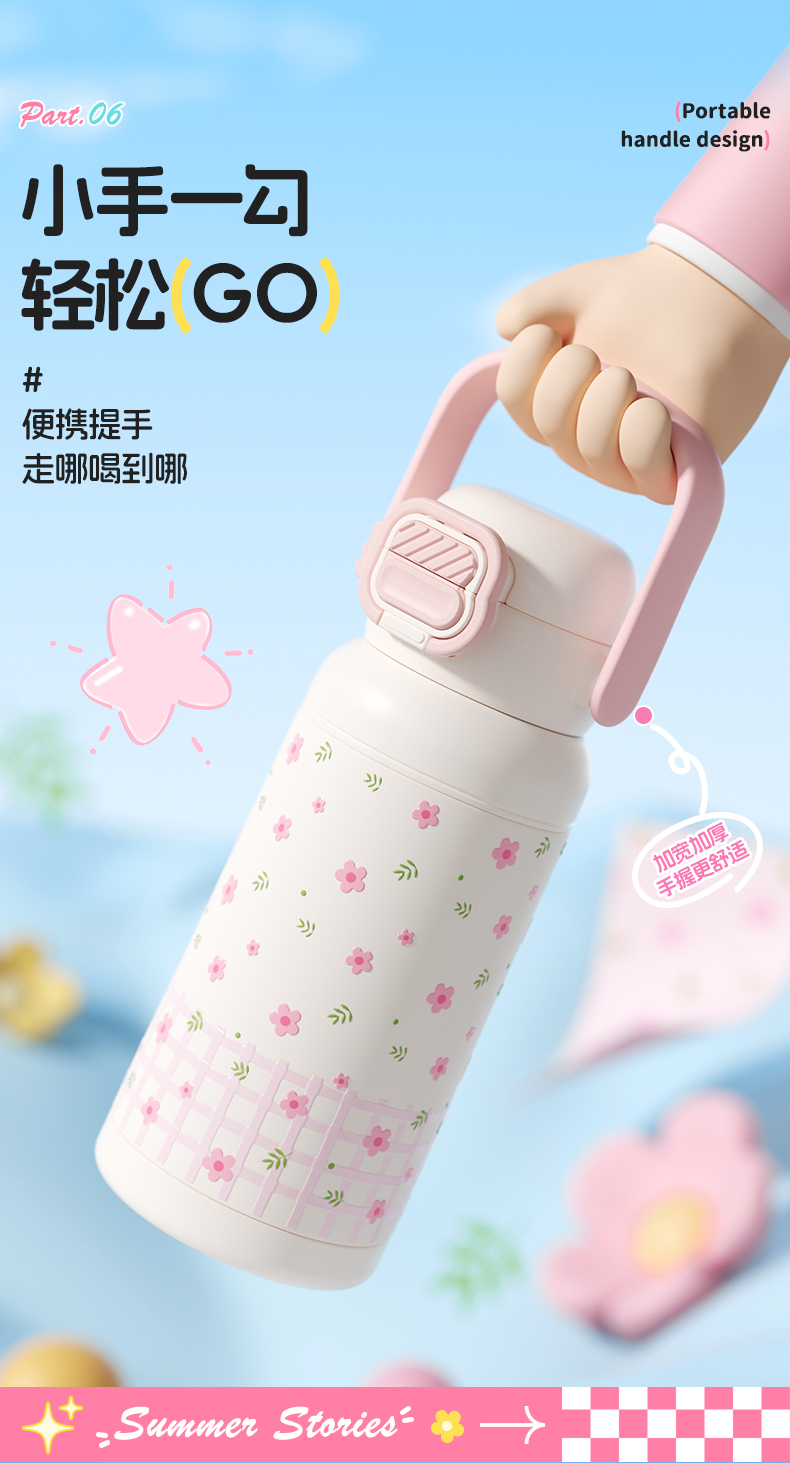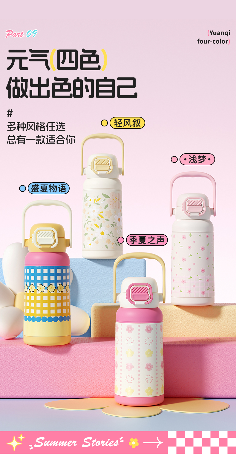 杯趣莫奈花园316L内胆不锈钢保温杯大容量双饮盖B-2064