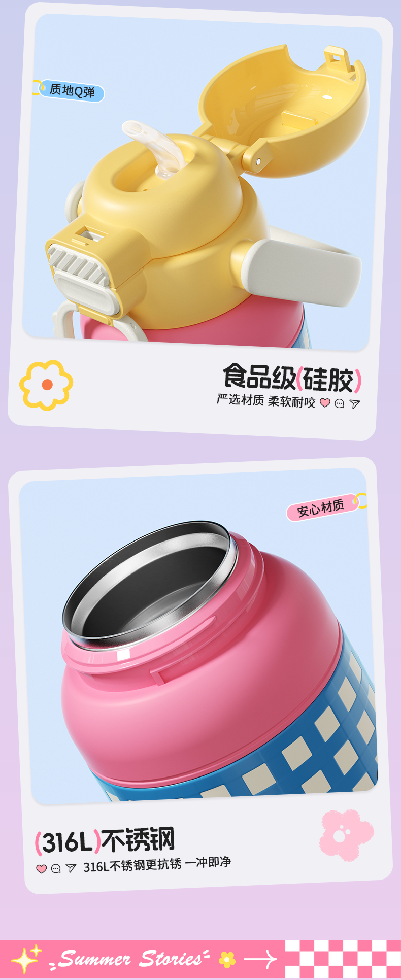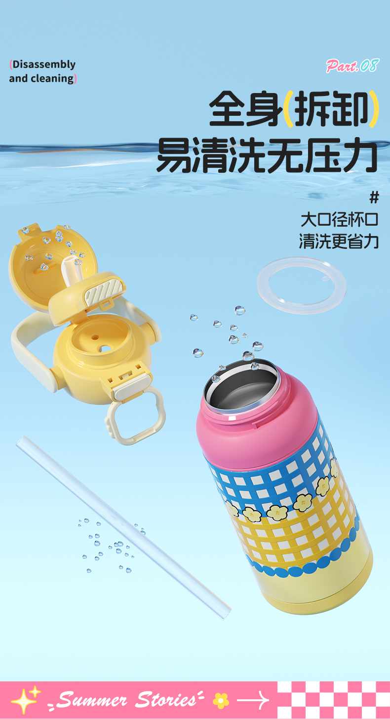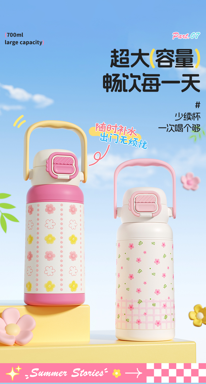 杯趣莫奈花园316L内胆不锈钢保温杯大容量双饮盖B-2064