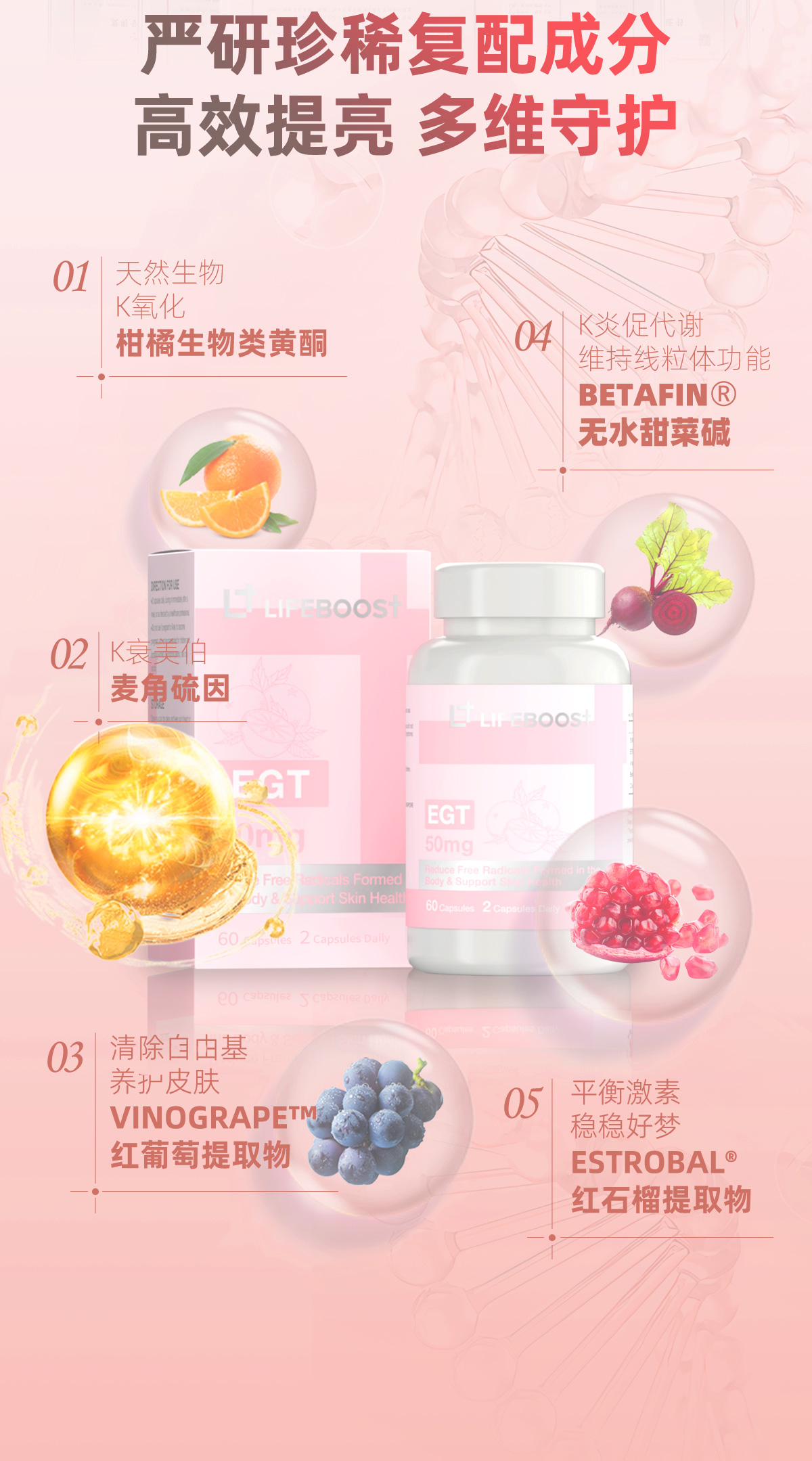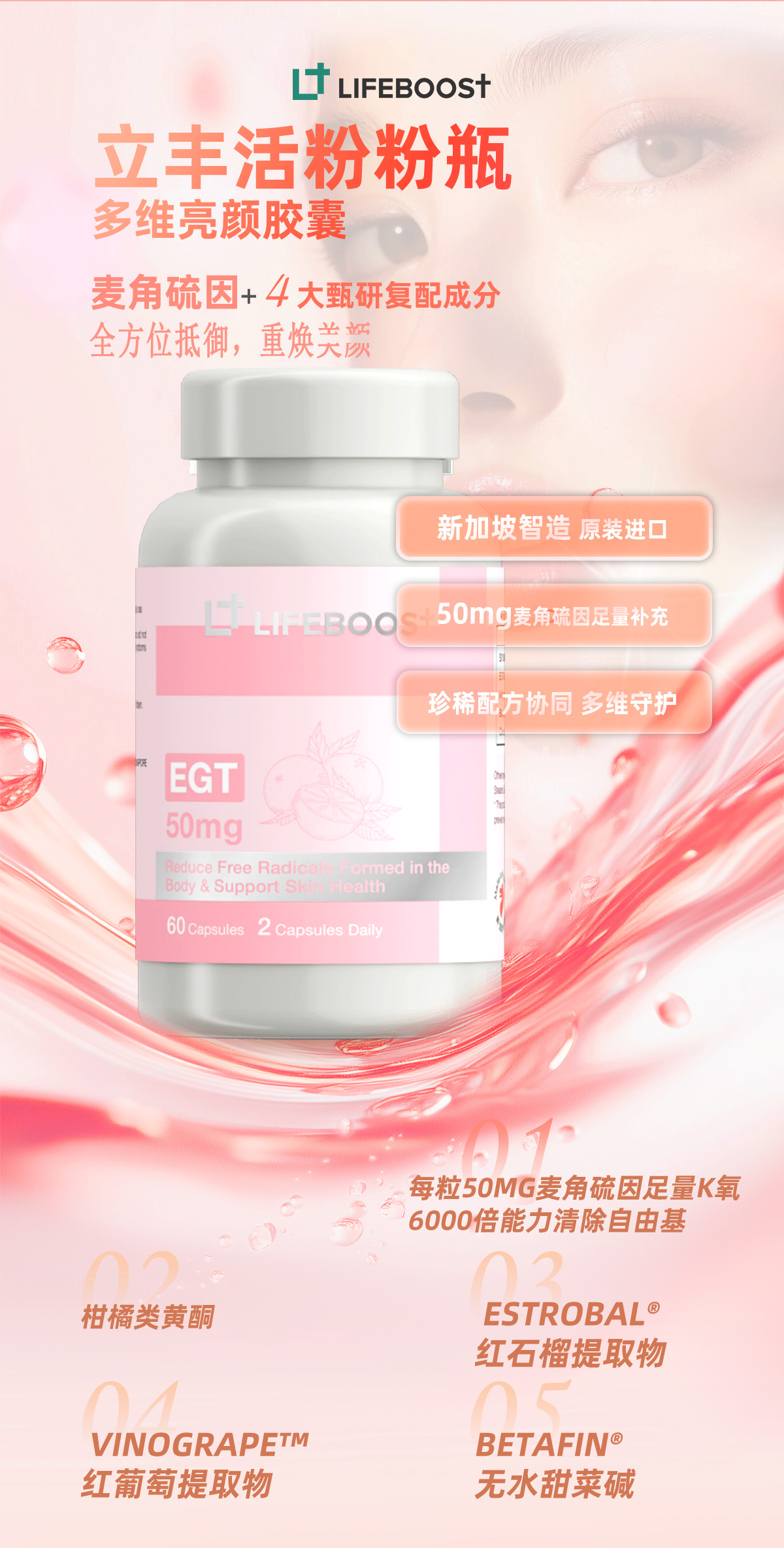 LifeBoost麦角硫因 立丰活多维抗衰助眠护体 红葡萄红石榴甜菜根提取 60粒/瓶