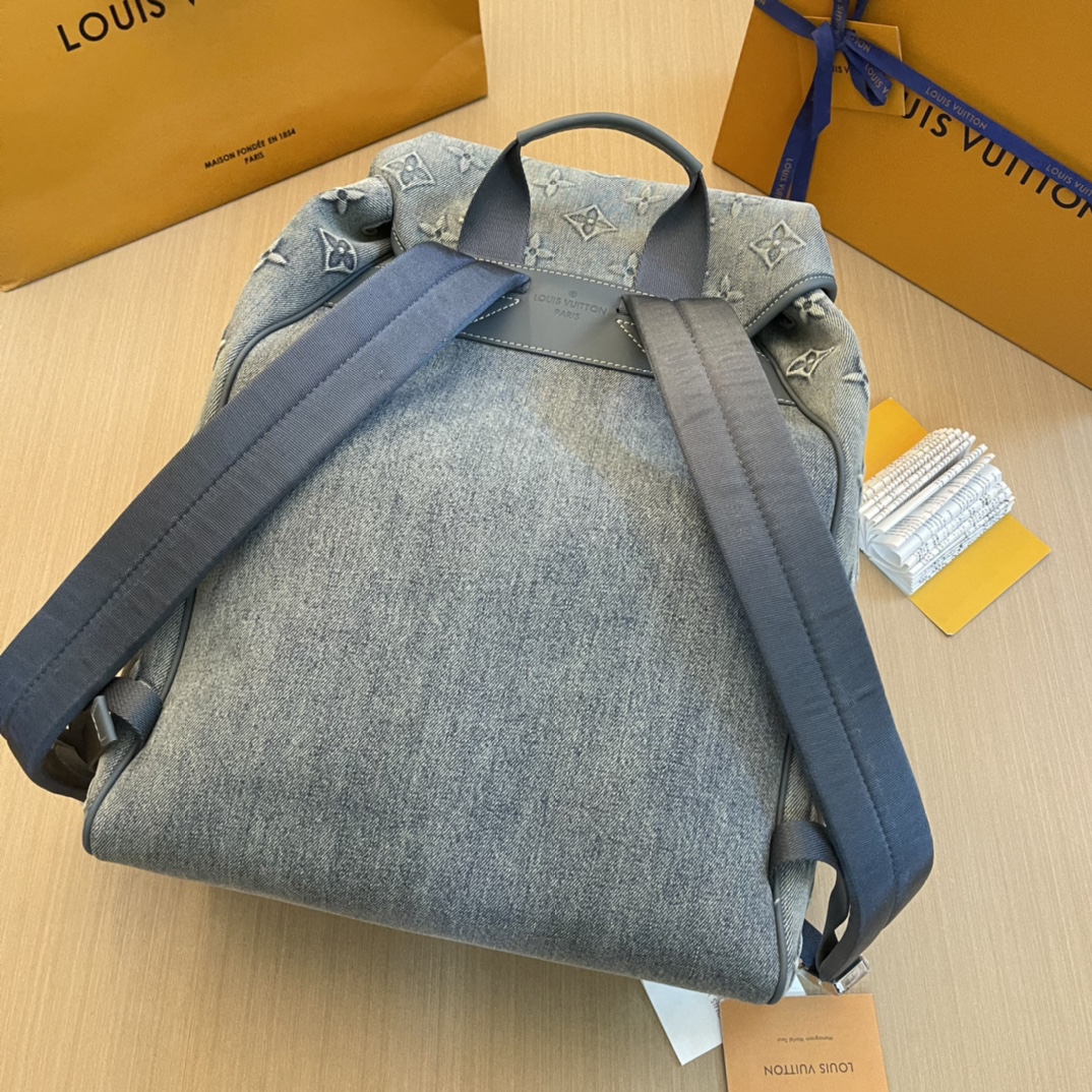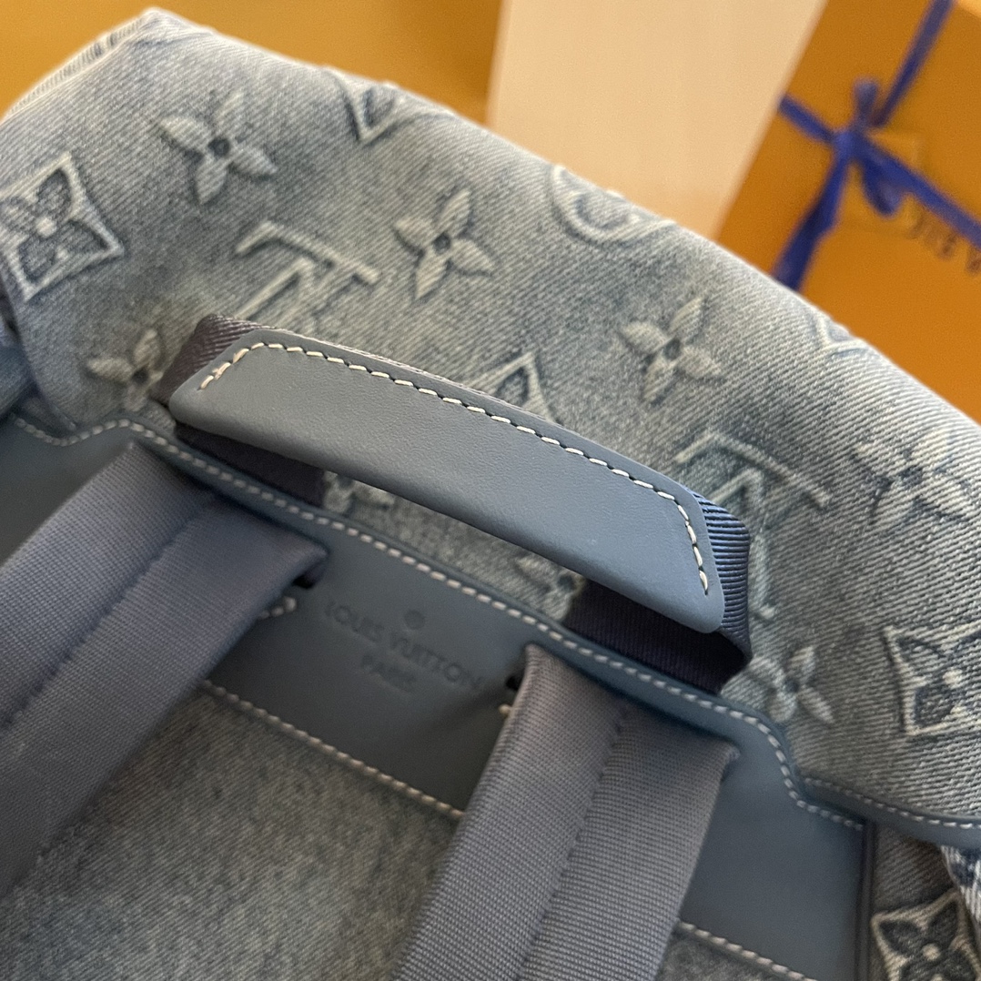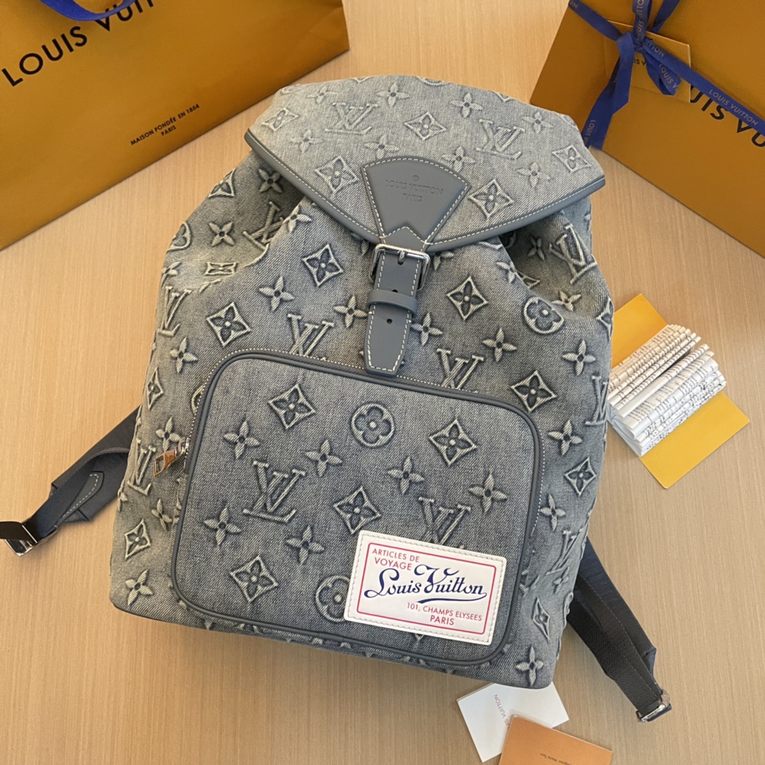 Montsouris 双肩包将 Monogram 图案压印于褪色丹宁布,成就经典设计之外的个性选择。抽绳收拢柔软构型,复古标签源自品牌典藏。