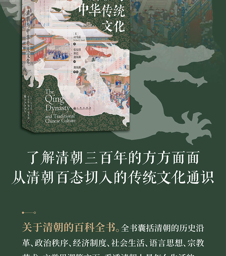 ·关于清朝的百科全书。全书囊括清朝的历史沿革、政治秩序、经济制度、社会生活、语言思想、宗教艺术、文学思潮等方面,看透清朝人是怎么生活的·海外汉学界为数不多的系统关注清代中国传统文化的专著。本书一反碎片化细节化的研究趋势,从大历史的角度呈现中华传统的社会文化领域的多样性·沟通新清史与传统清史。在“清朝文化完全汉化”和“清朝文化充分保留了满洲特征”的两极观点之间,作者找到中间地带,利用丰富的多语种的文献资料,展现了这片土地的人民在人心人性、文化基因、社会心理方面强韧的延续性