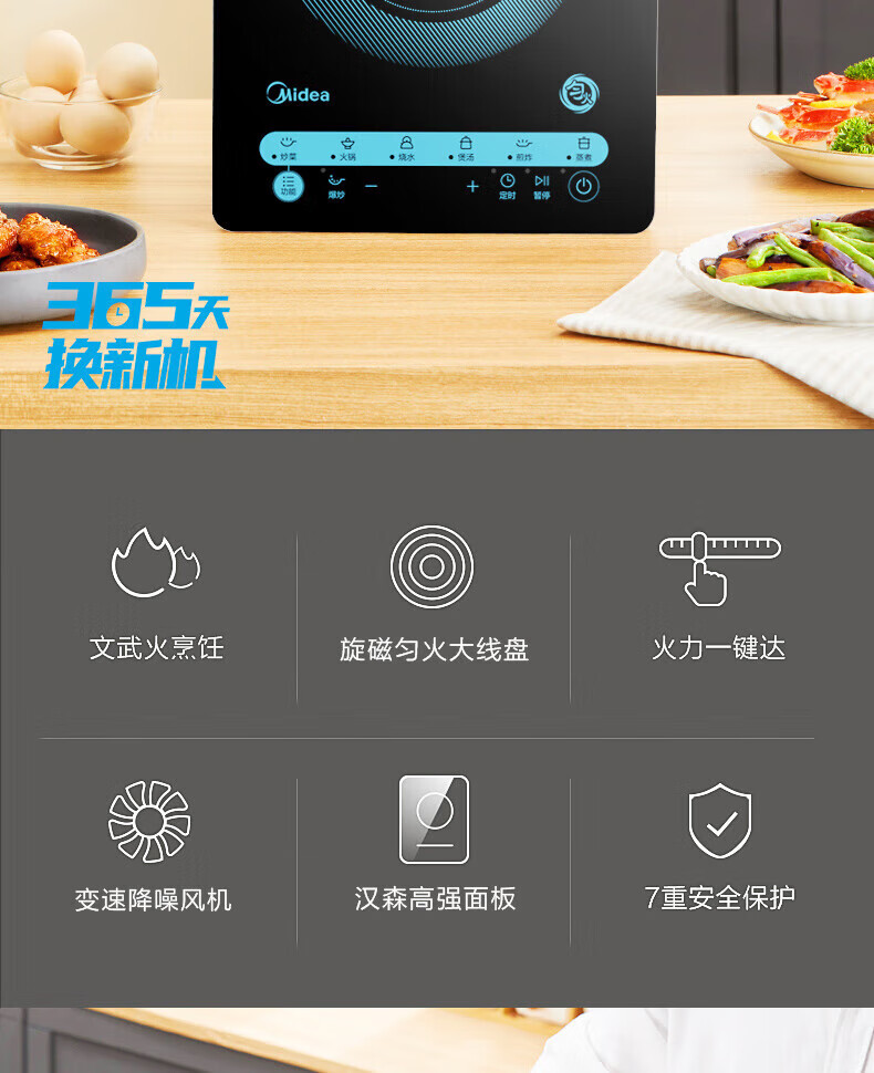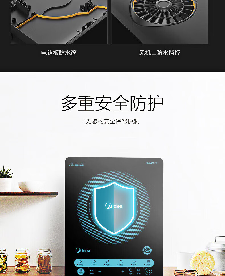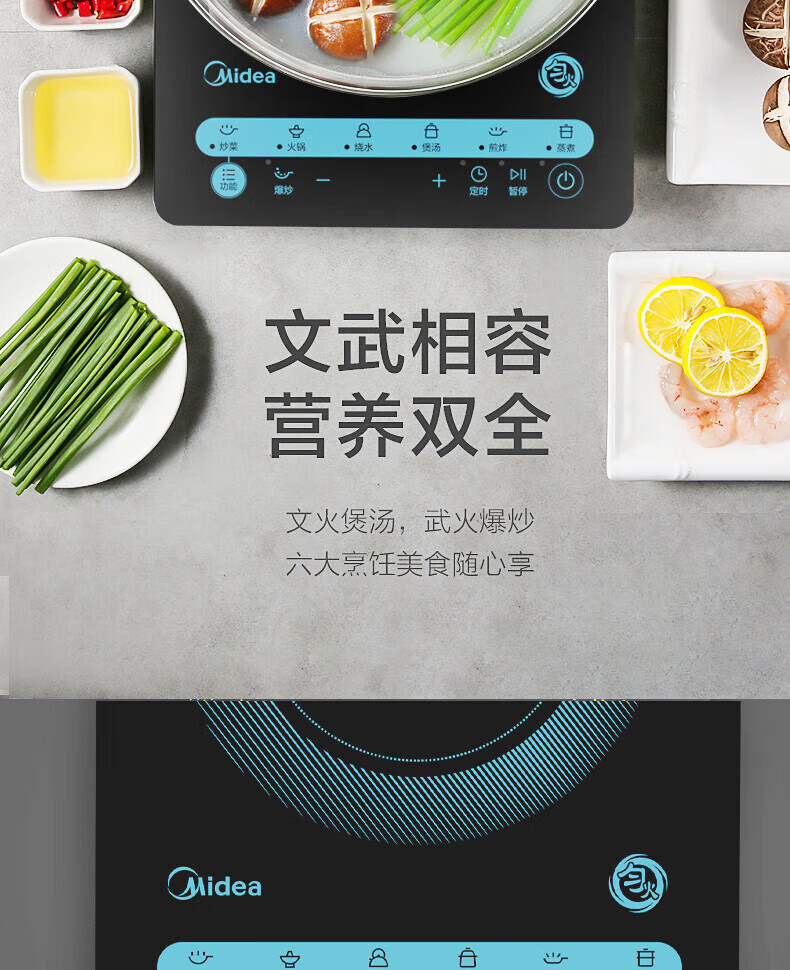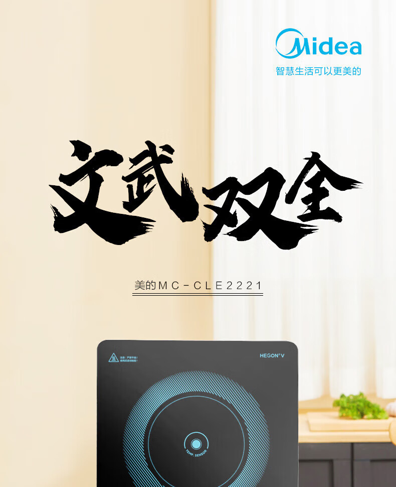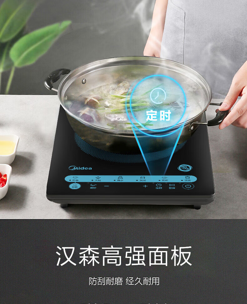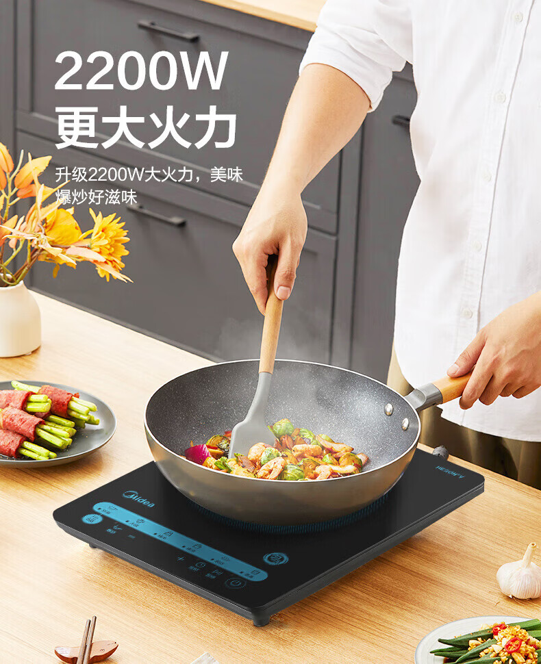 美的(Midea)电磁炉家用大功率匀火加热火锅炉十档火力智能定时触摸屏4D防水家用MC-CLE2221