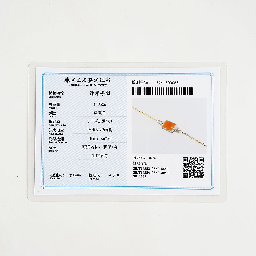 【天然正品】A货翡翠AU750双色金豪镶钻镶天然细腻糯种平安无事牌黄翡手链20CM(长度可调节)281025AH25