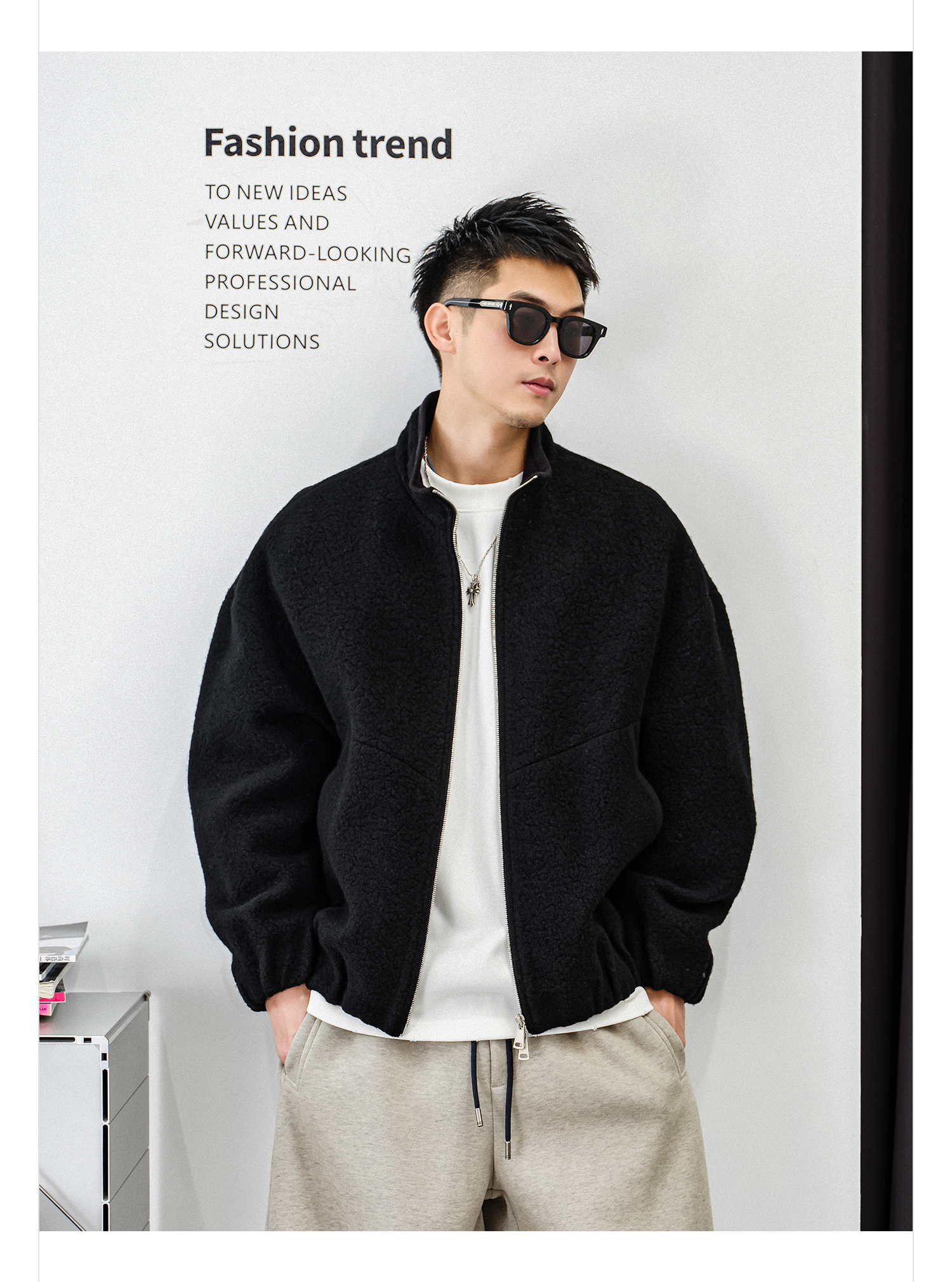 徐太浪【羊毛混纺 毛绒感】立领教练夹克男2025新款冬装休闲外套