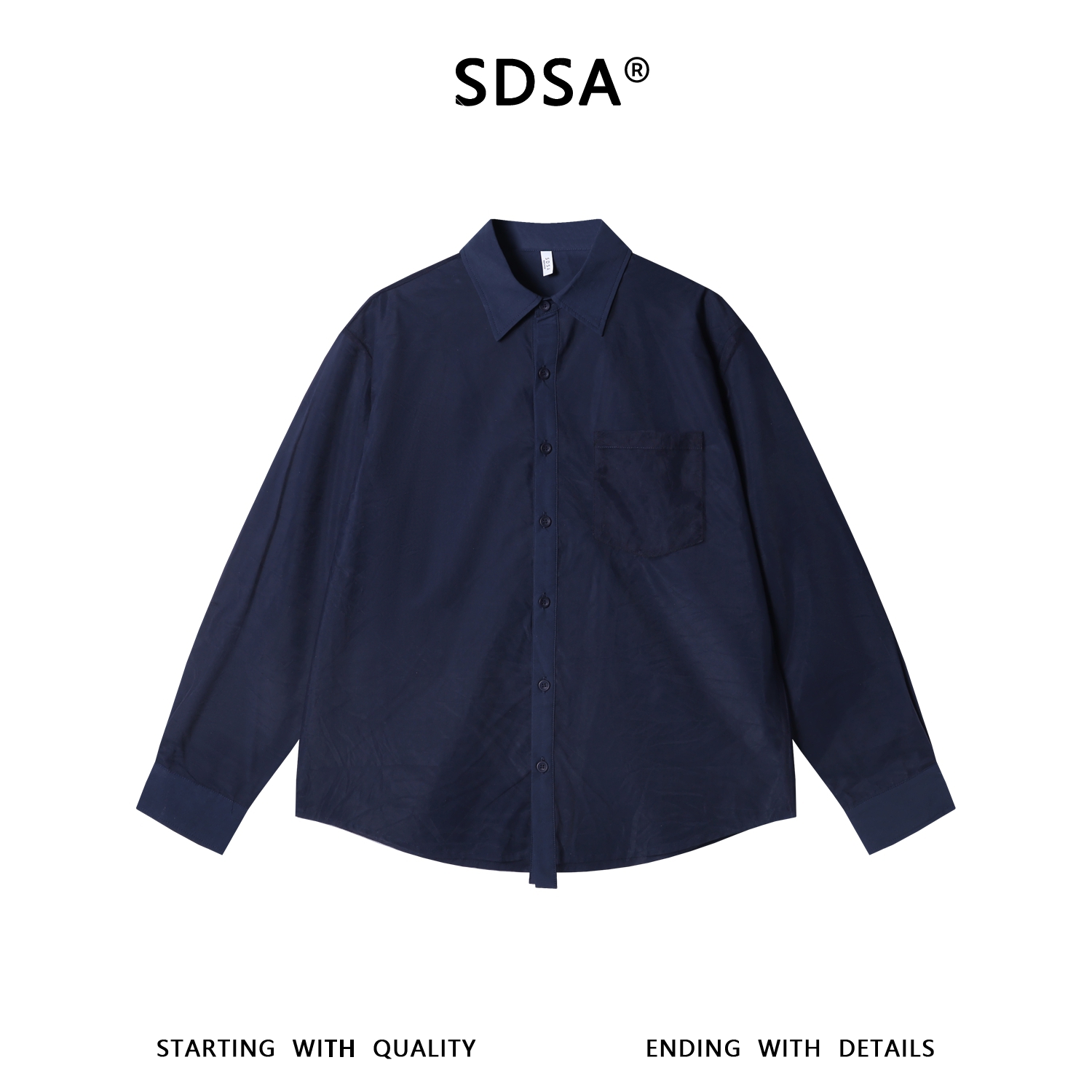 SDSA男装2026新款高贵轻奢韩版简约纯色翻领长袖衬衫百搭商务衬衣