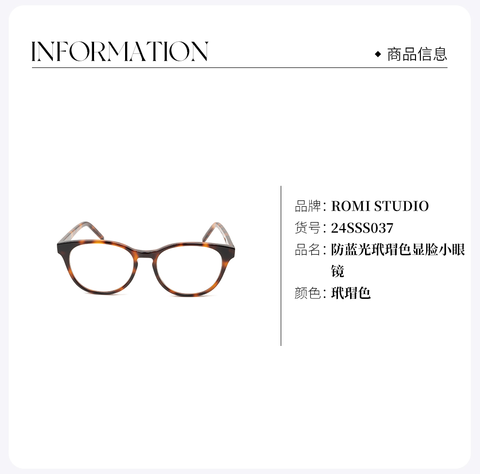 ROMI STUDIO"复古态度"时髦O压防蓝光玳瑁色显脸小眼镜24SSS037