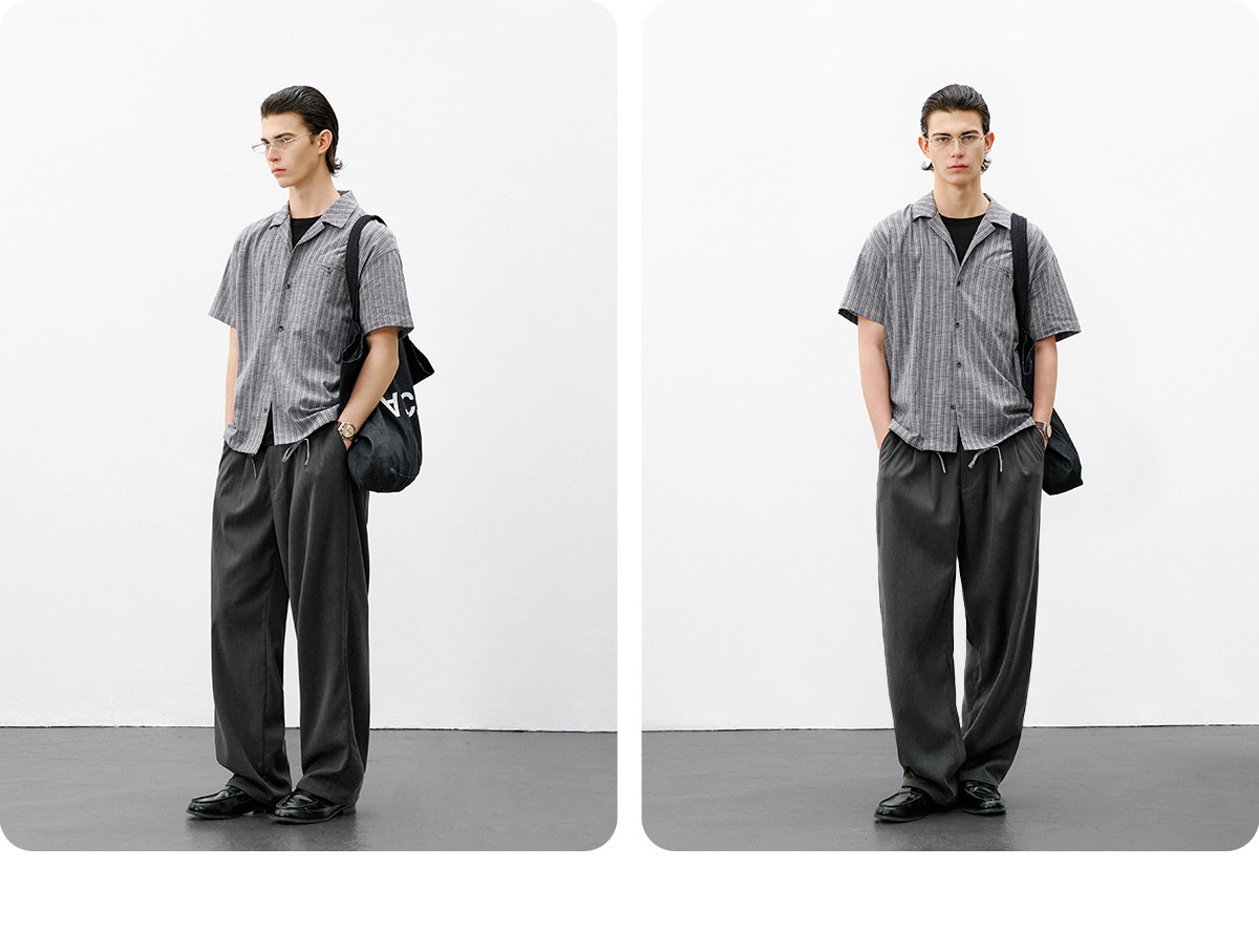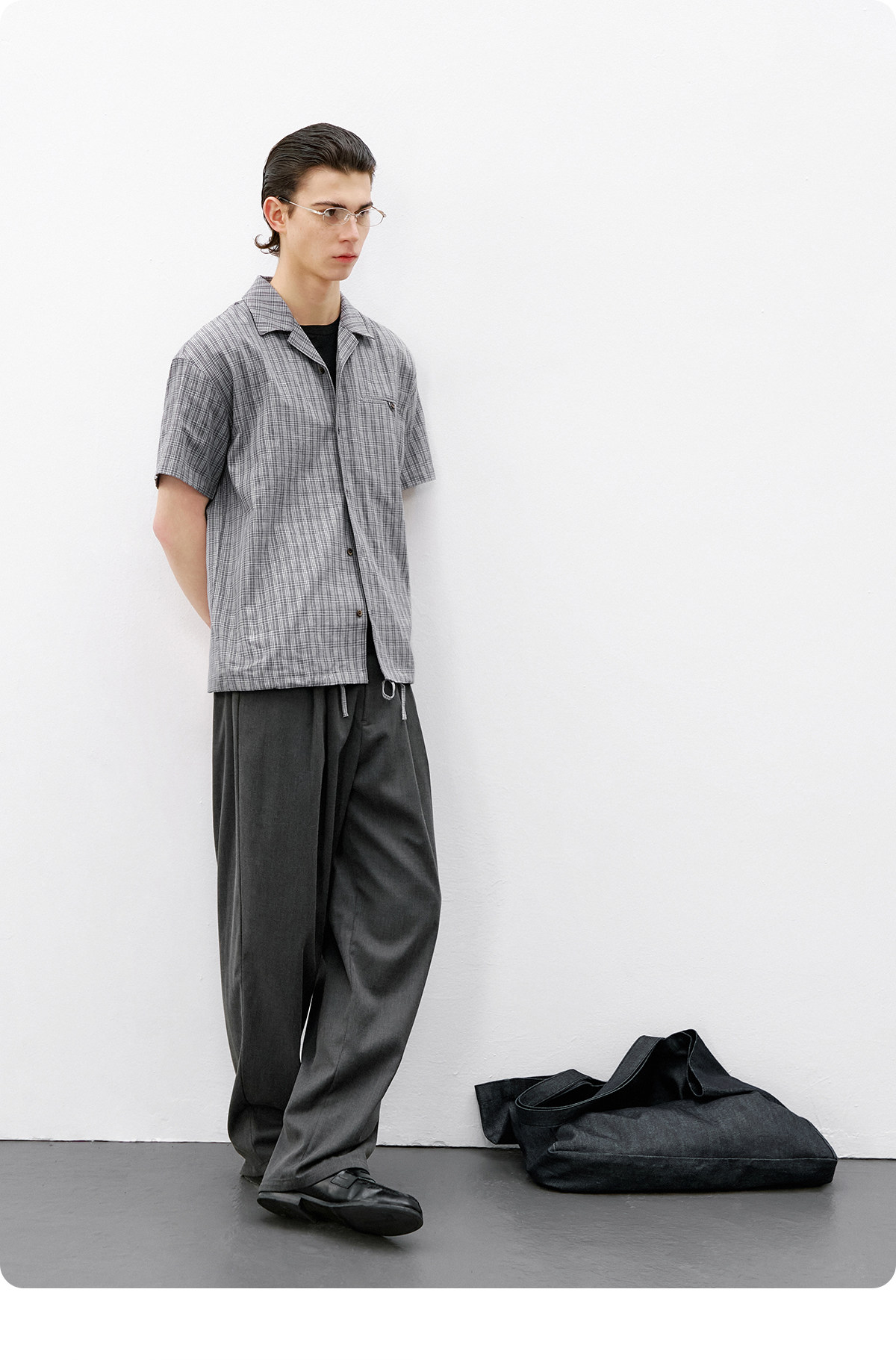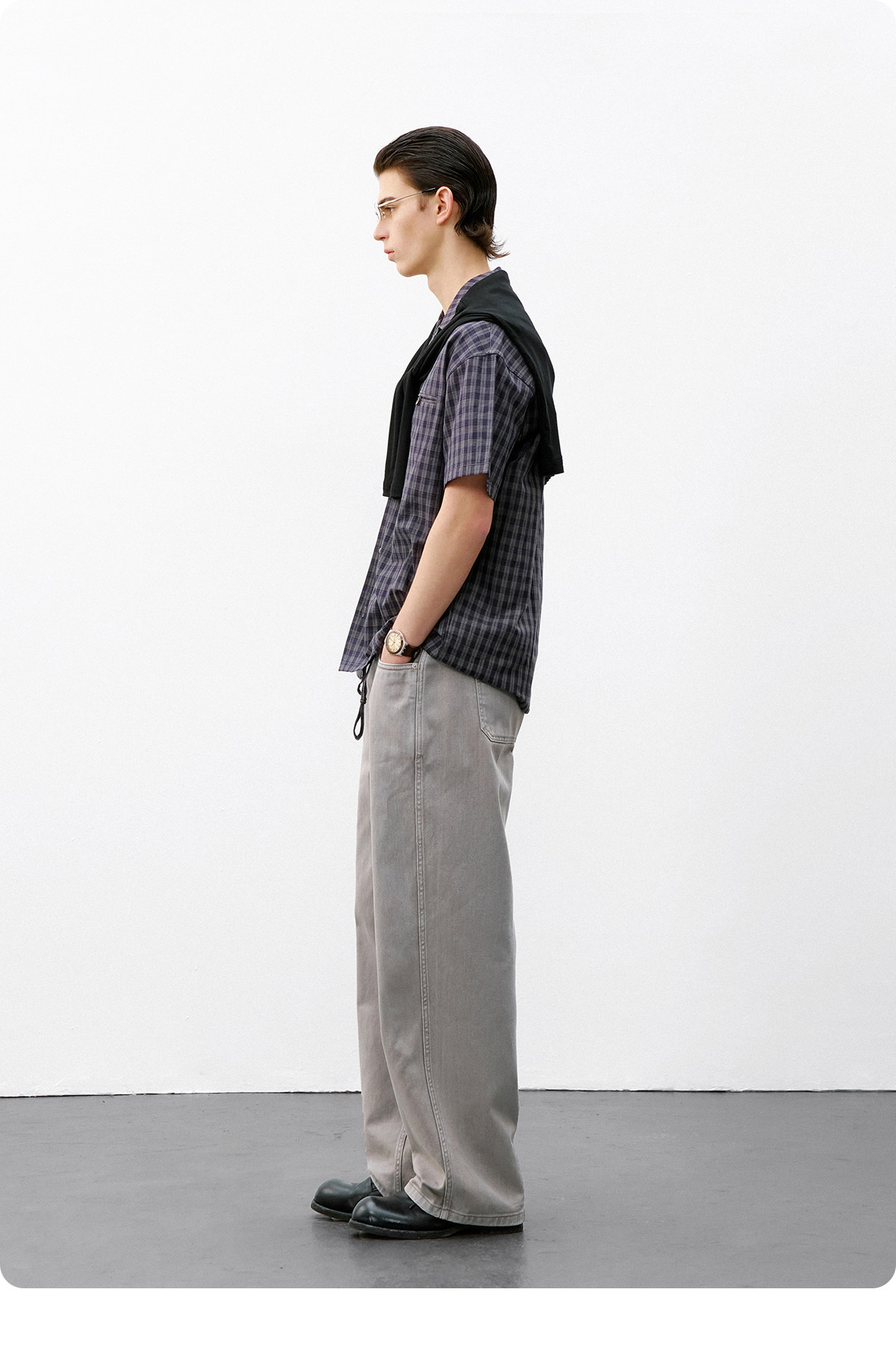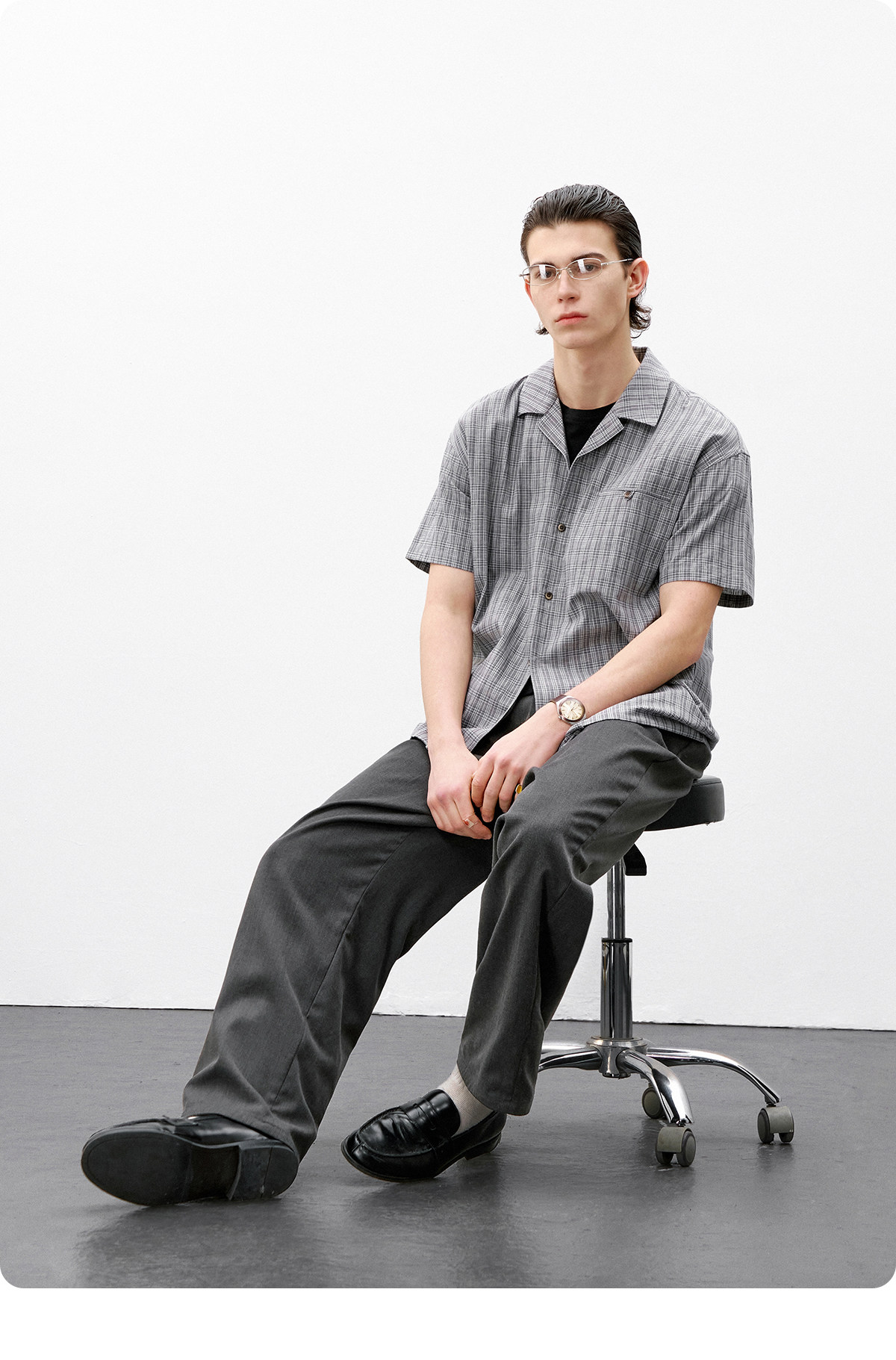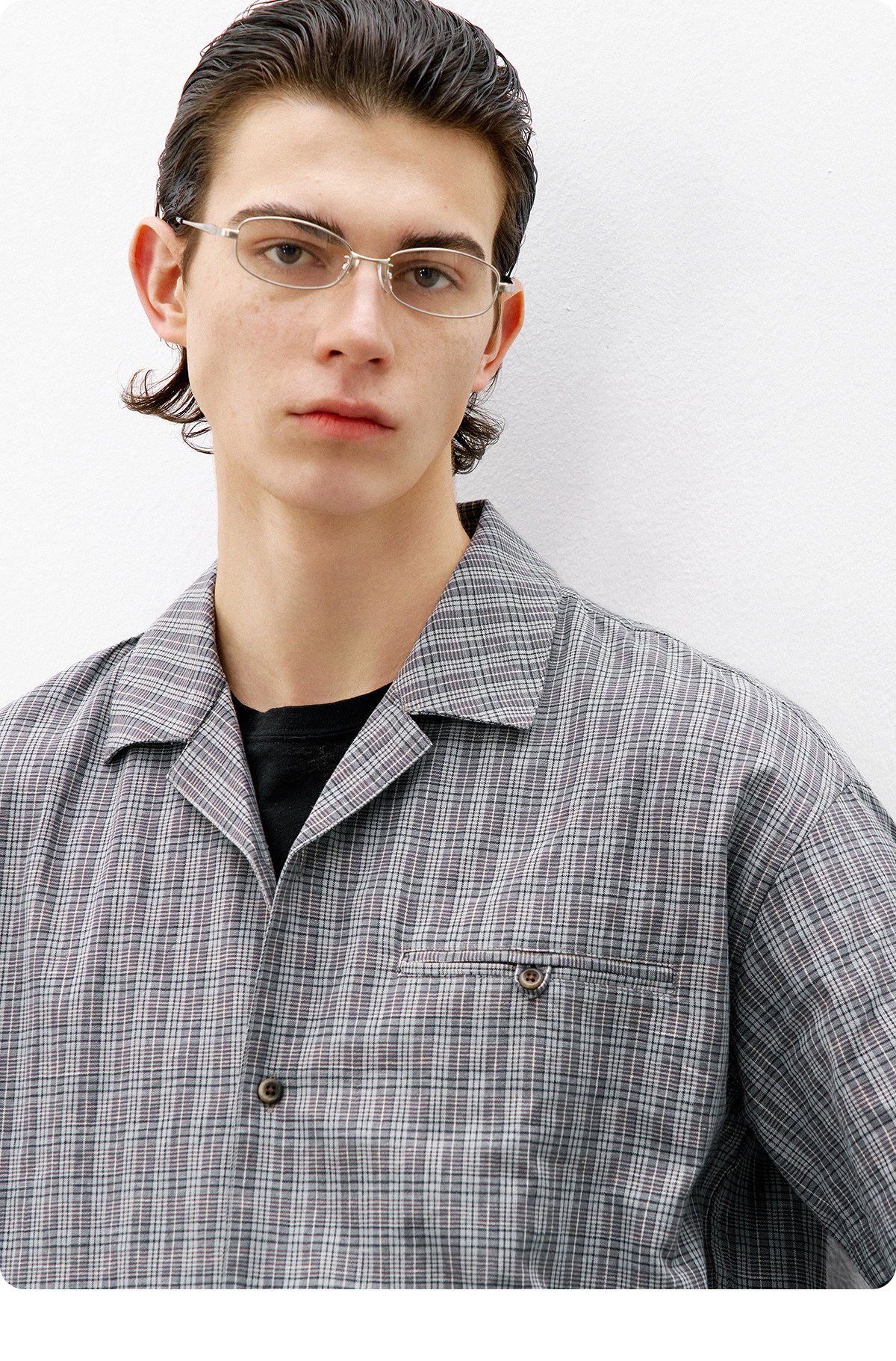 714street复古亚麻格子衬衫男2026夏季潮牌宽松落肩棉麻短袖衬衣