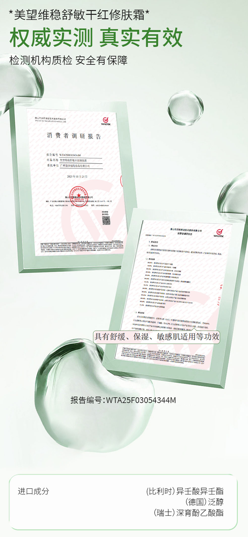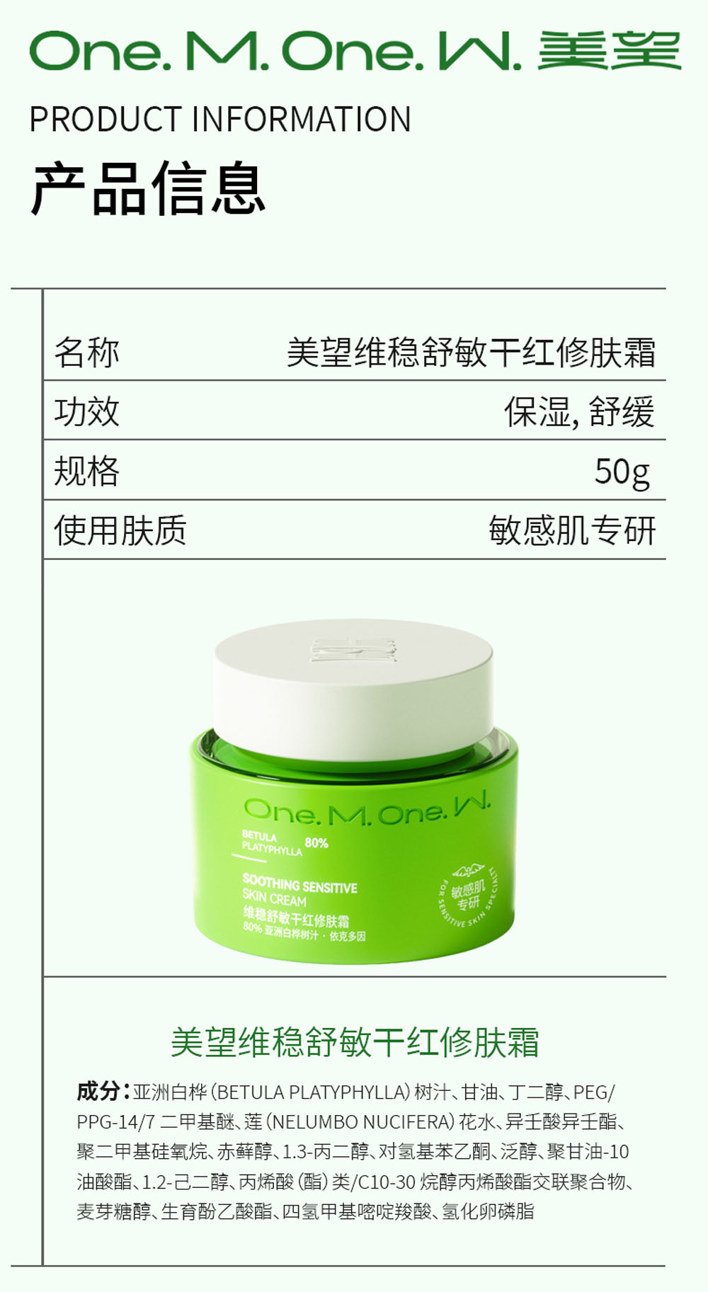 美望维稳舒敏面霜干红修肤霜 敏感肌舒缓补水保湿