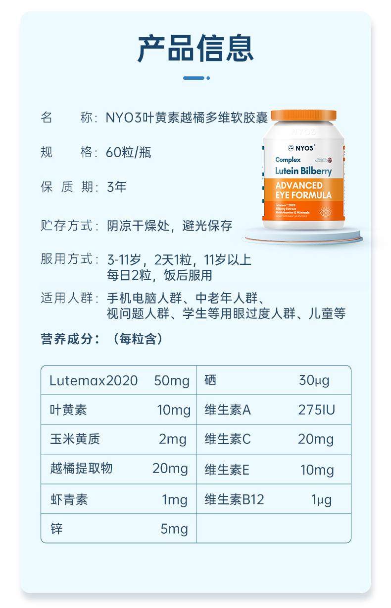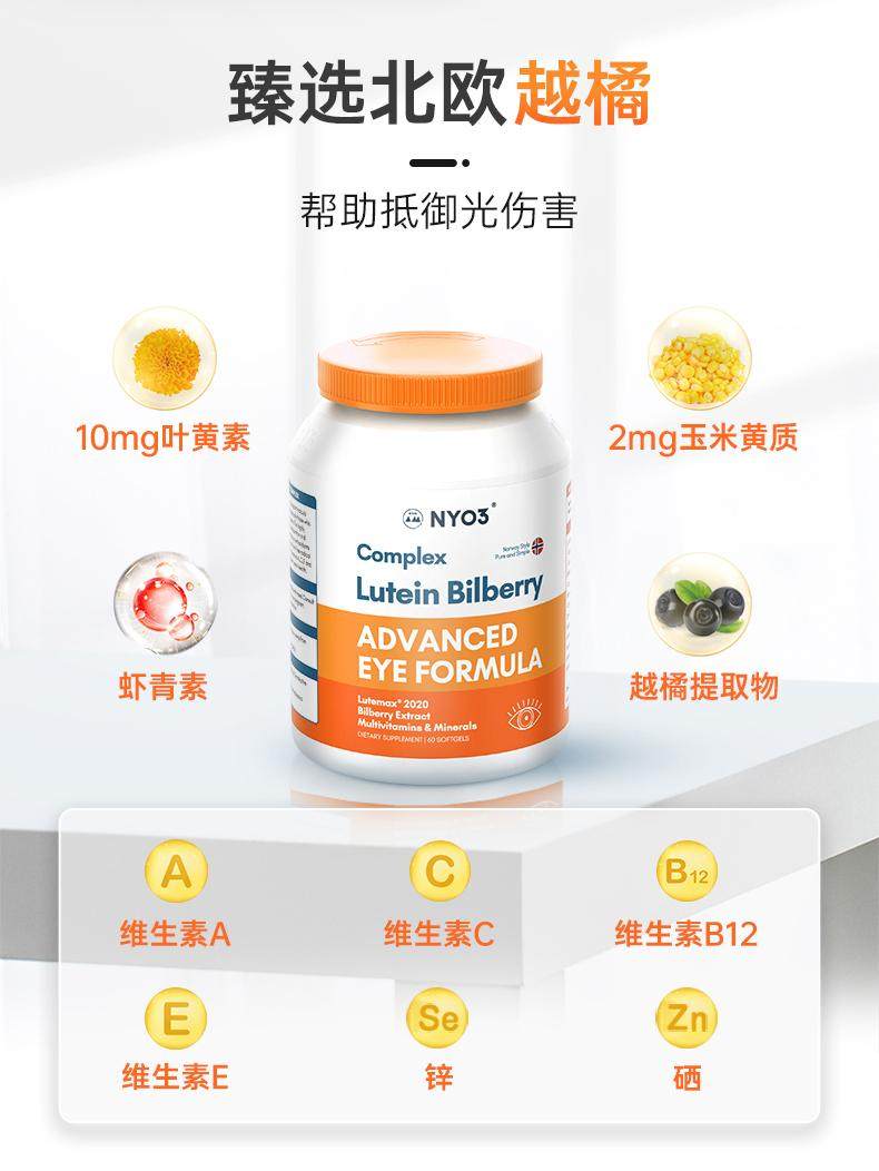 【NYO3】诺威佳挪威进口多维越橘专利叶黄素成人中老年眼底营养素