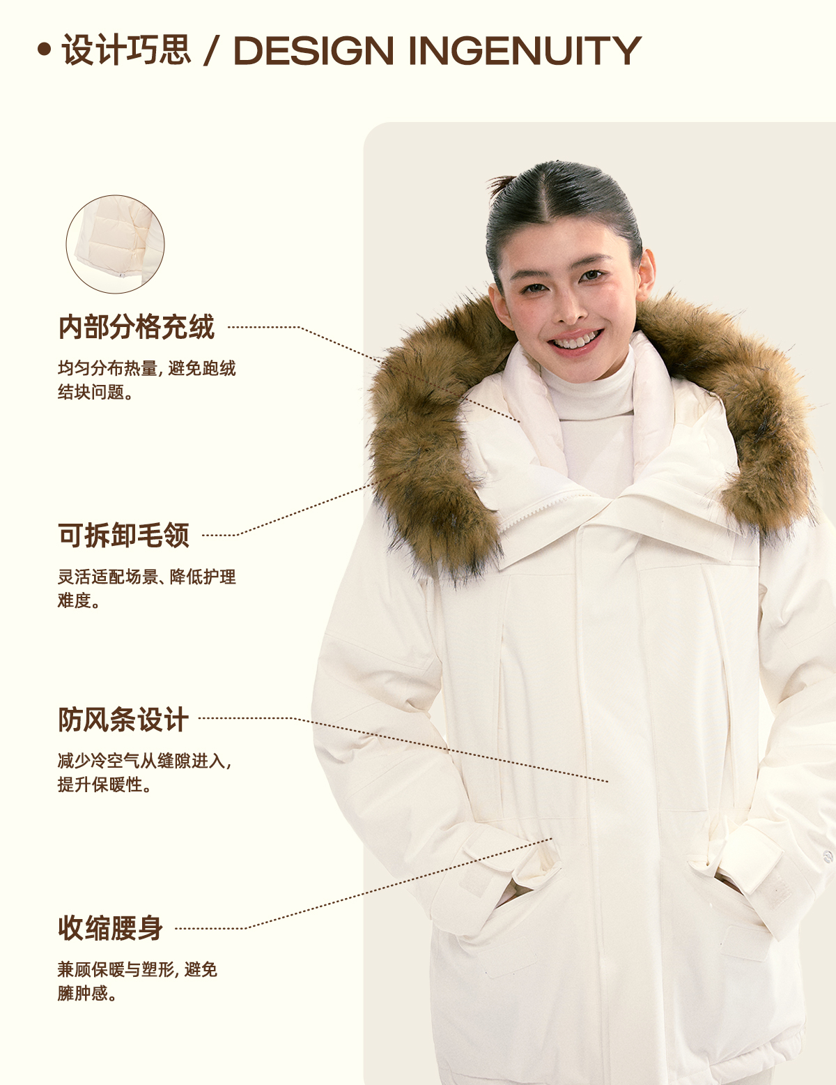 Ariseism 美式复古设计感可拆卸毛领羽绒服女冬季新款外套