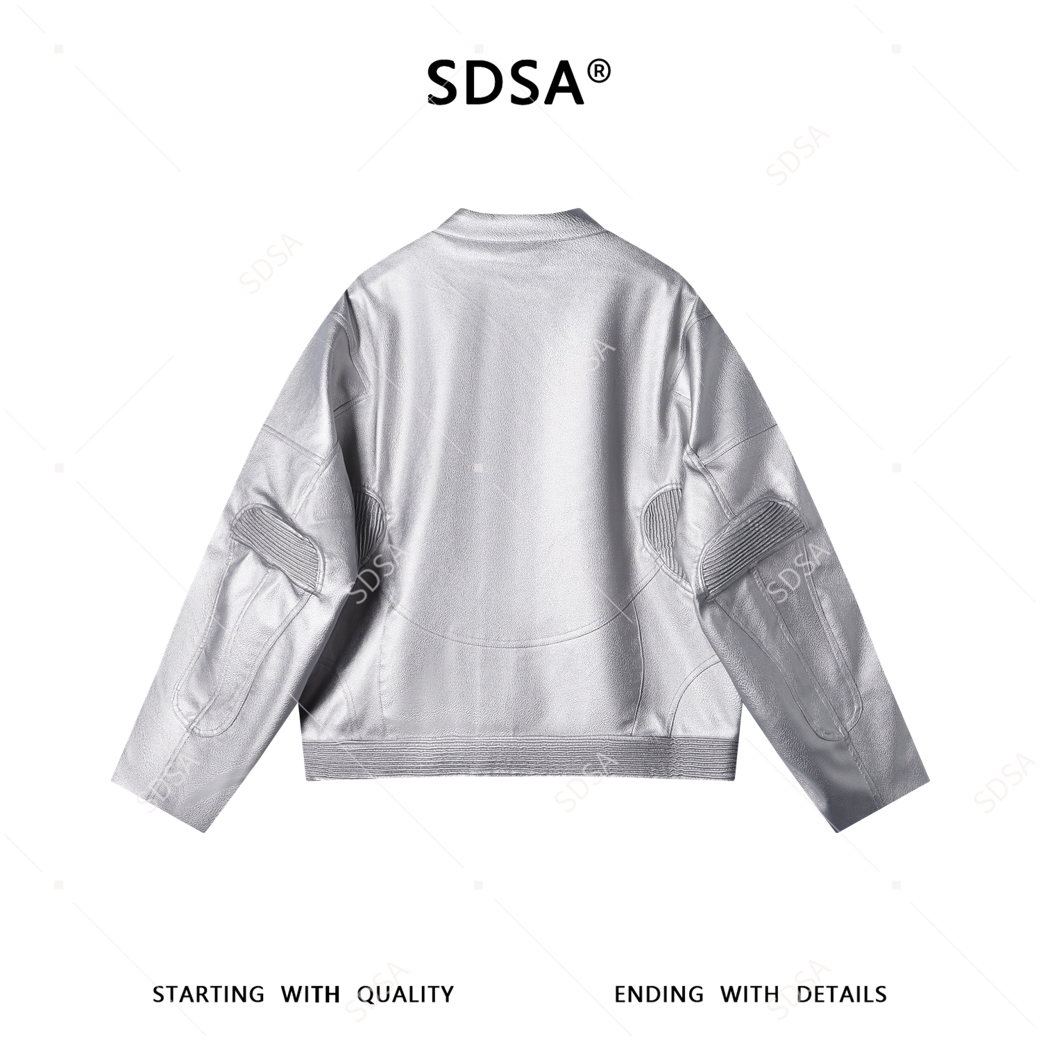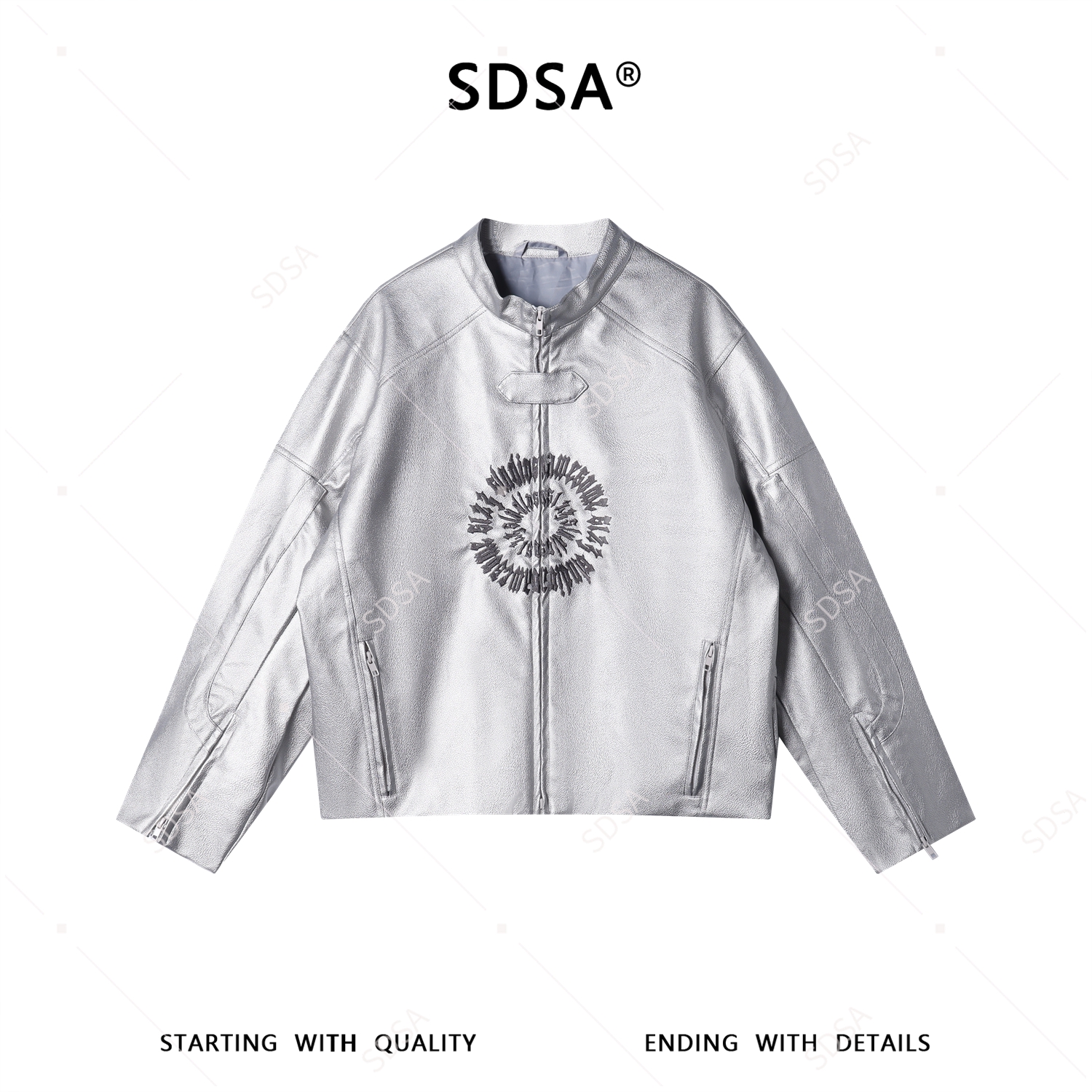 SDSA男装2026新款潮牌未来感皮衣男女同款亮面刺绣机车风上衣