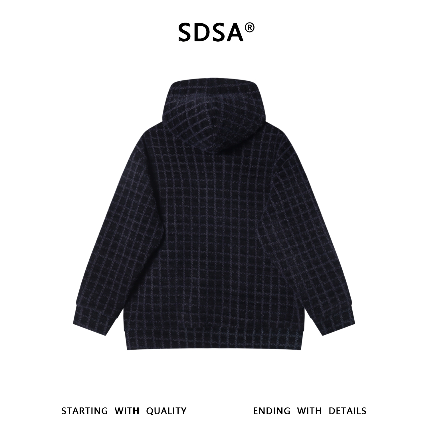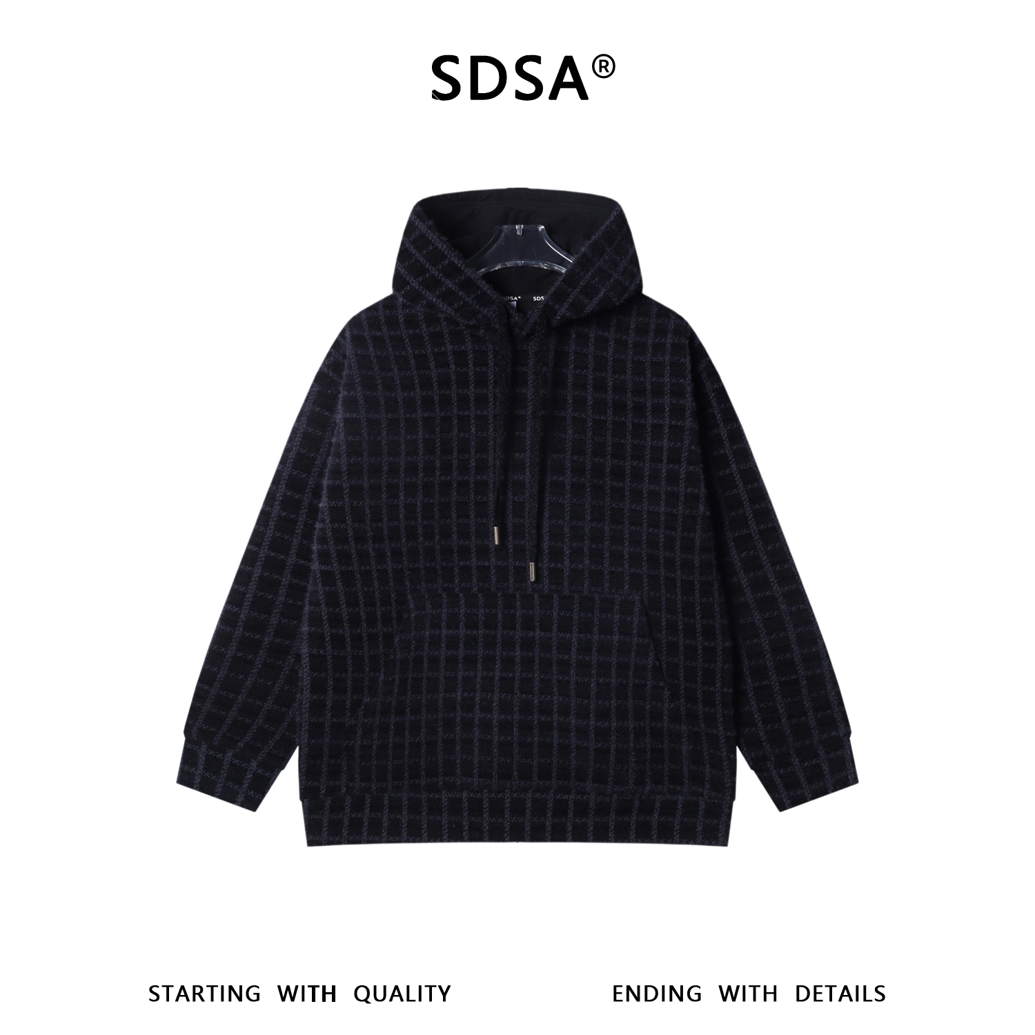 WY1558SDSA男士秋冬新款痞帅男装撞色格纹格子连帽卫衣百搭时尚套头上衣