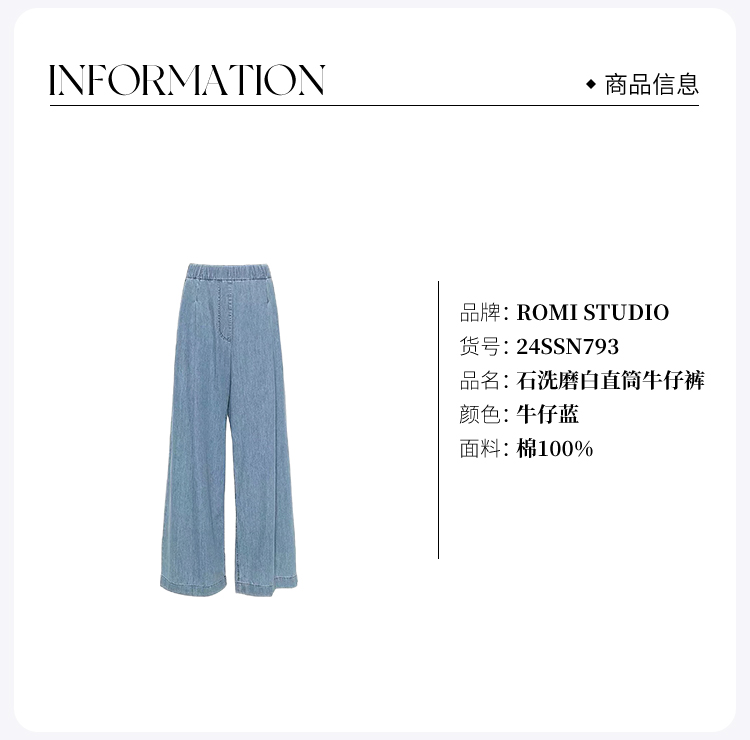 ROMI STUDIO “惬意而行” 100%粗支棉石洗磨白直筒牛仔裤 24SSN793