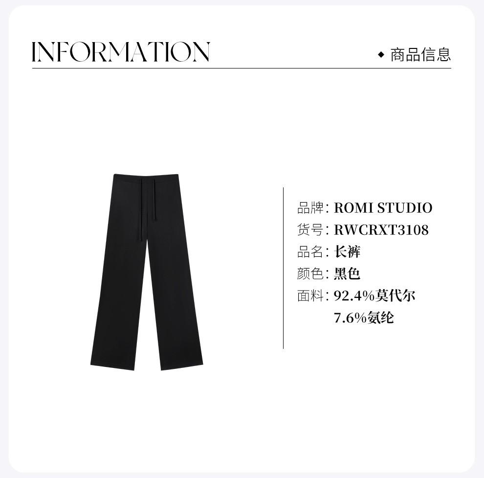ROMI STUDIO“轻盈自在”莫代尔混纺高回弹清爽感休闲裤RWCRXT3108