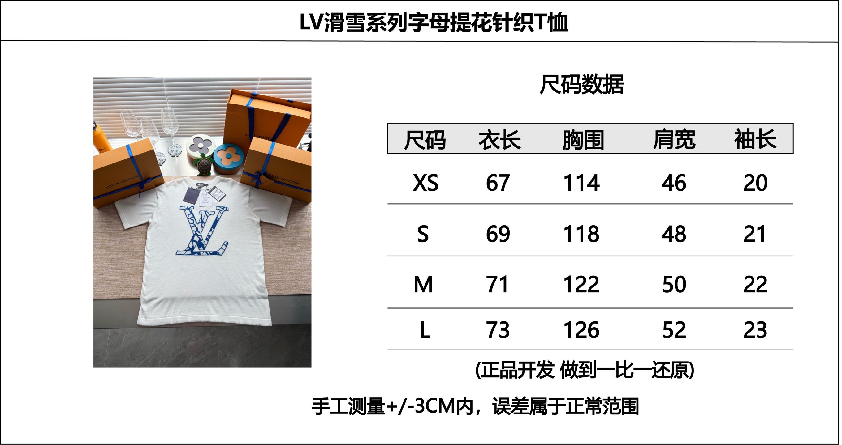 Louis Vuitton25ss滑雪系列裂纹提花针织短袖‼️整件衣服8850购买ZP拆解打造,采用定制白色棉质针织面料,做到100%全棉进口纱线,前幅饰以撞色裂纹提花,提花做到与面料融为一体,后幅饰以monogram花卉提花,定织标志性罗纹领口,超紧密度局部编织,真正做到1:1copy 码数:XS S M L