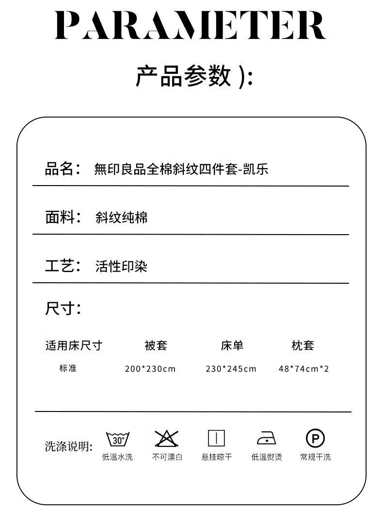 無印优品全棉斜纹四件套-凯乐 MUJI-TJ23-81