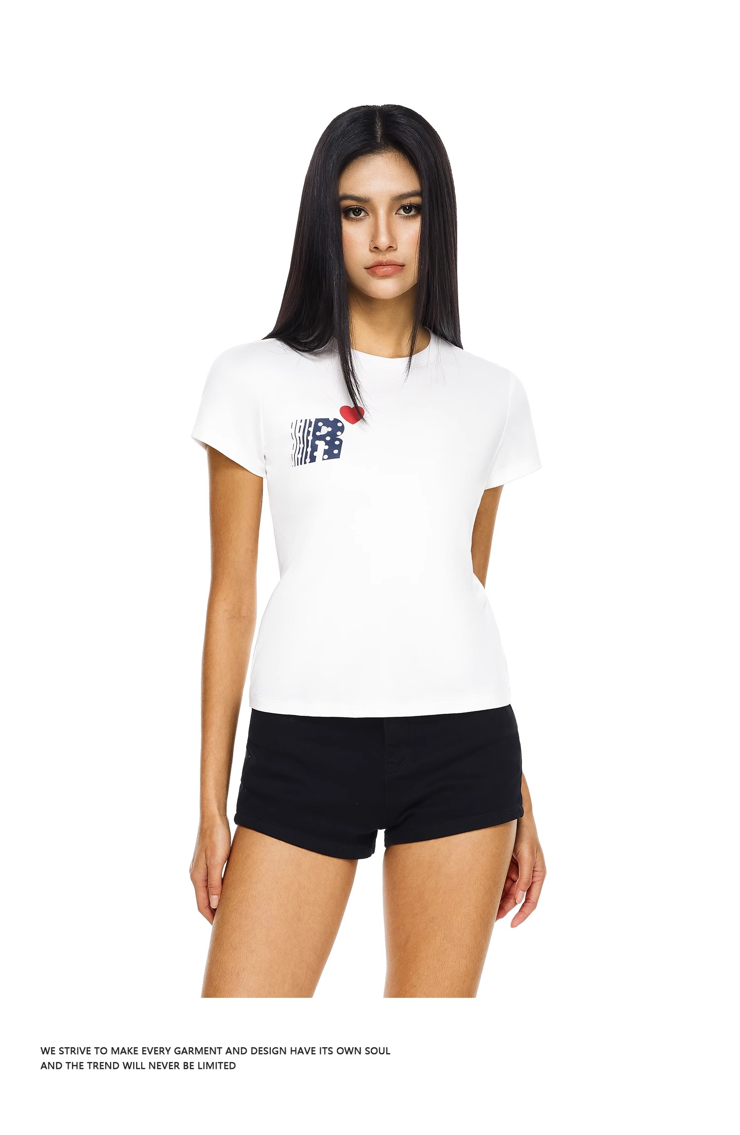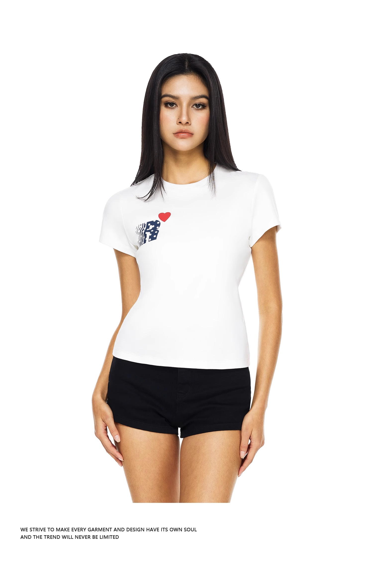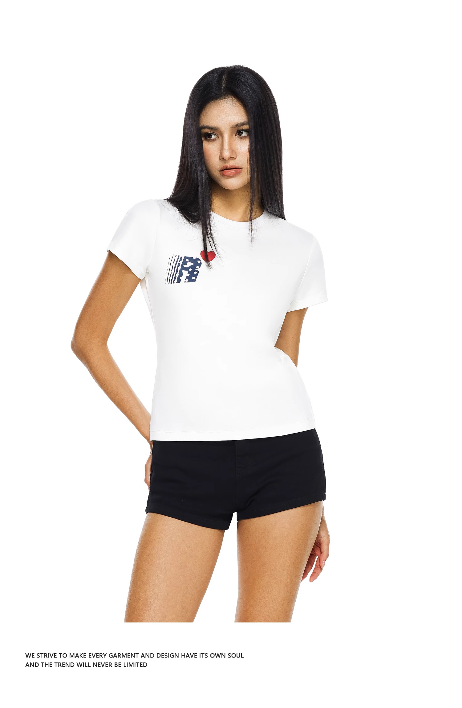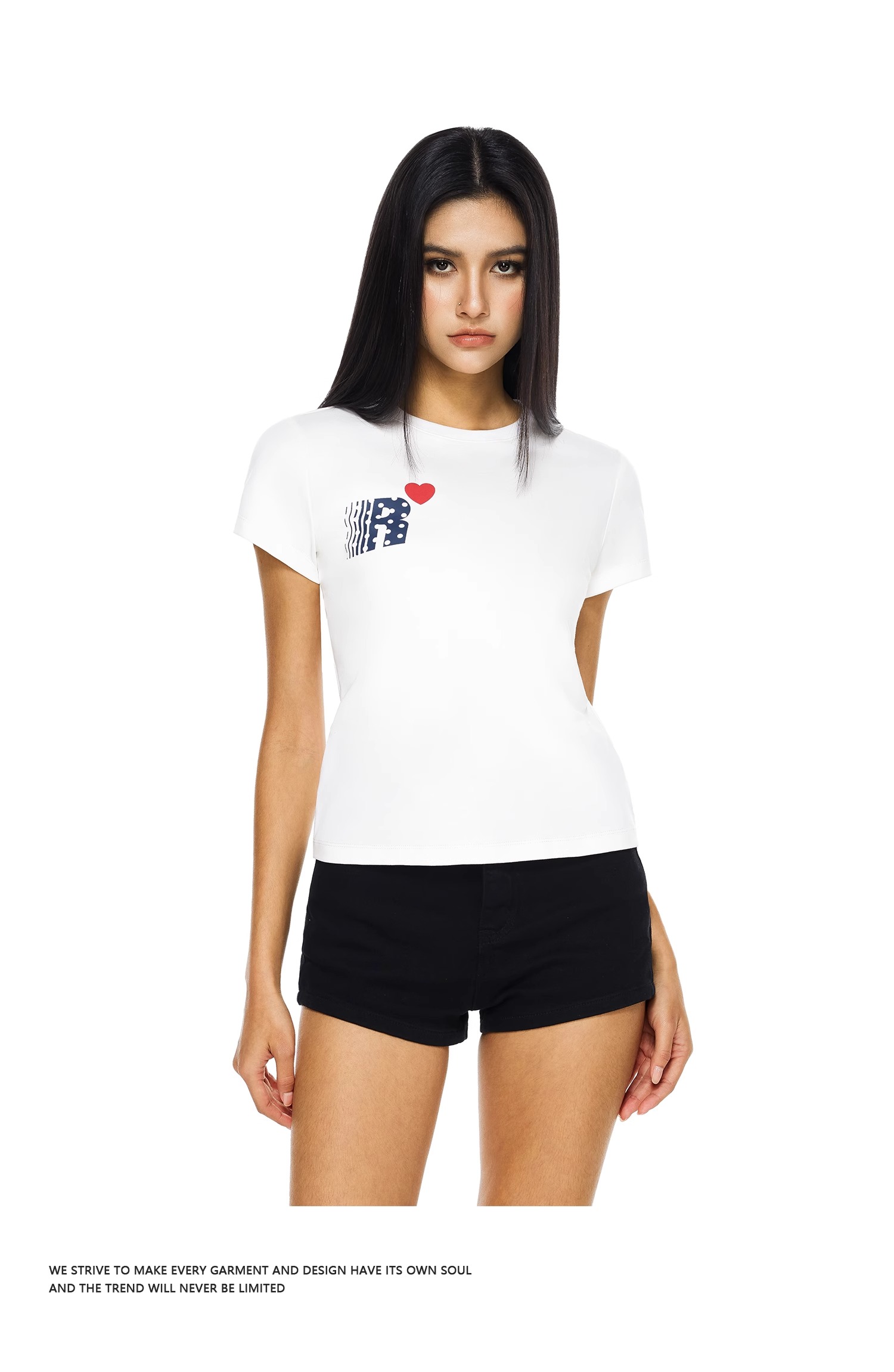 FDR官方店 爱心印花修身短袖t恤女辣妹显瘦体恤上衣