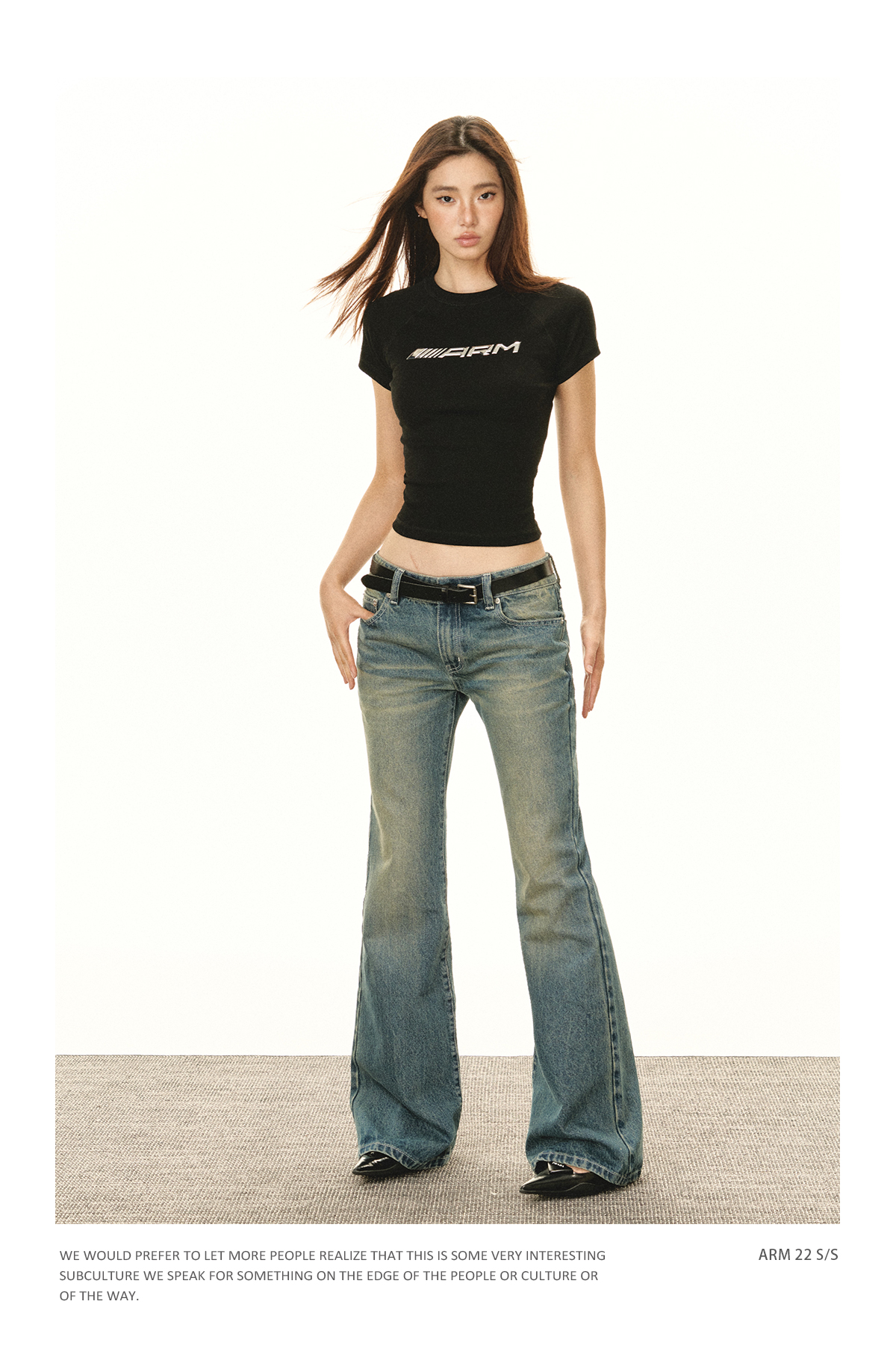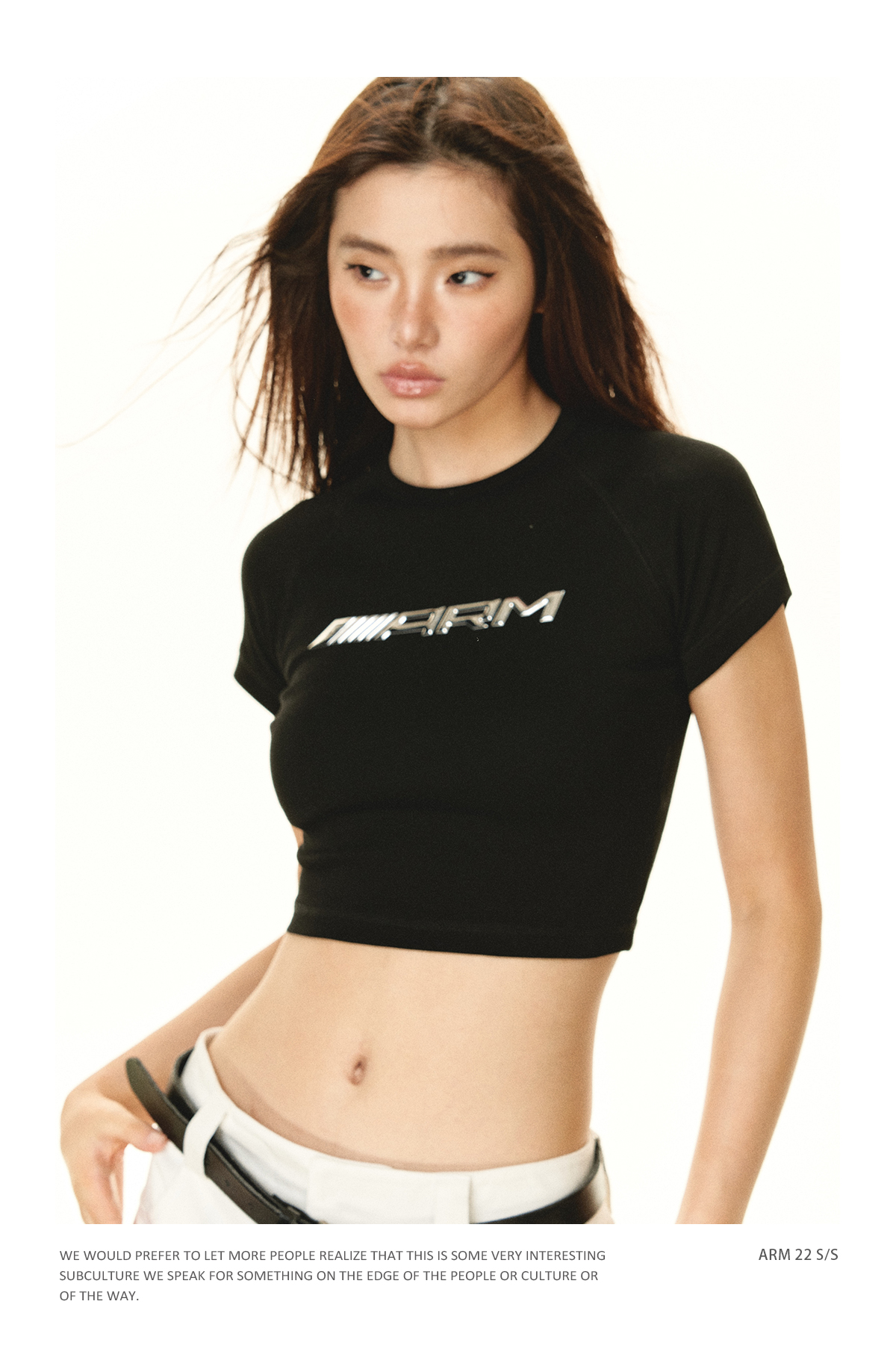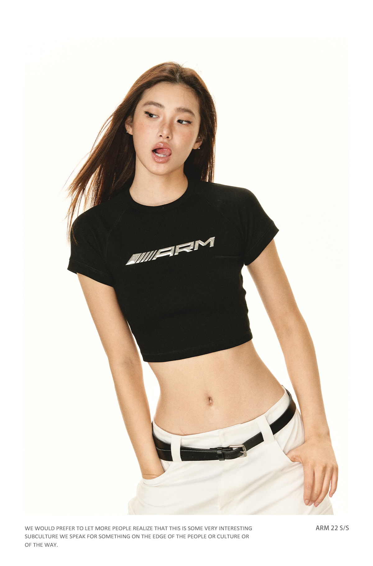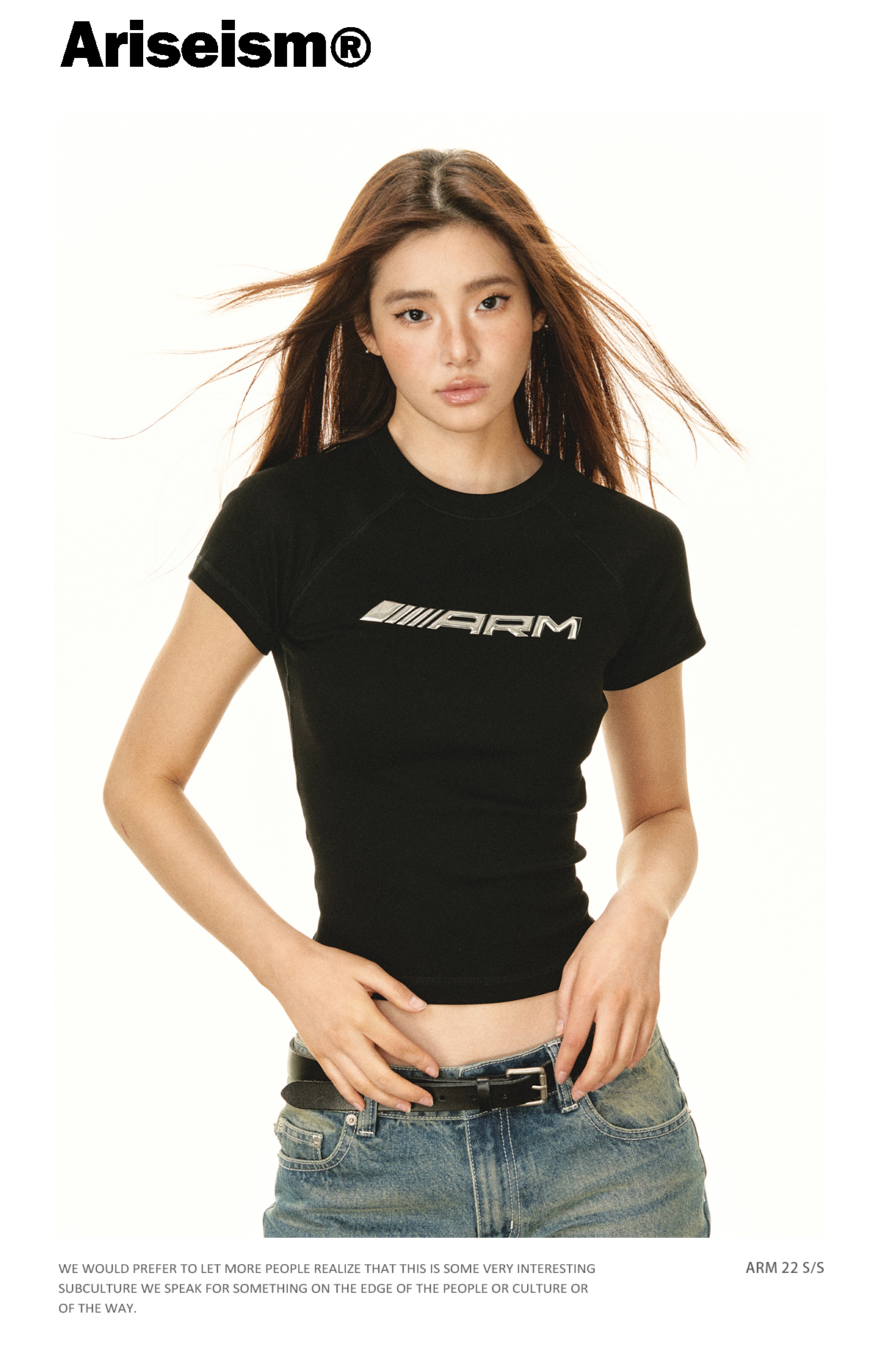 Ariseism 美式复古设计感短袖t恤女夏季新款辣妹紧身插肩袖上衣