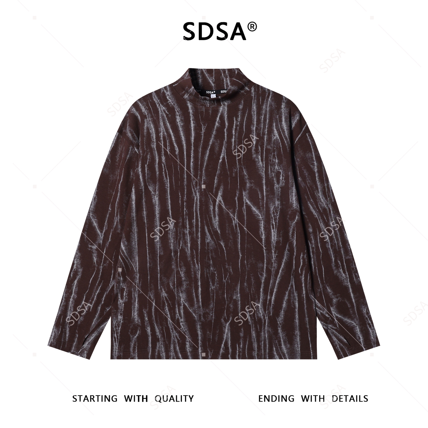 T4844SDSA男士秋冬新款痞帅肌理纹晕染半高领长袖T恤休闲百搭潮流上衣