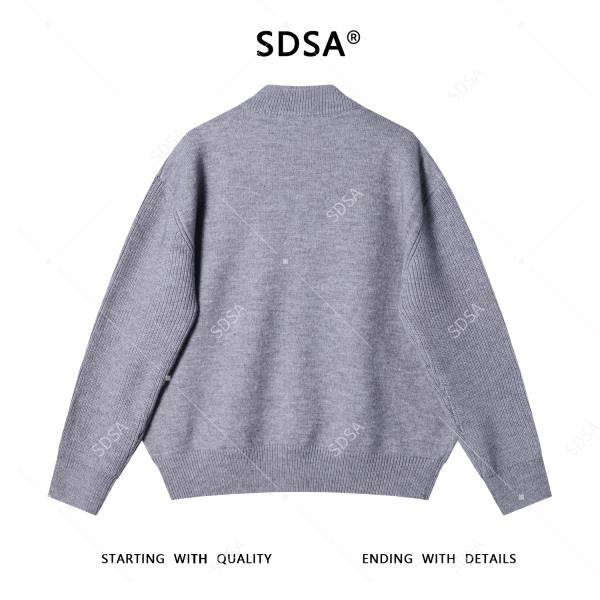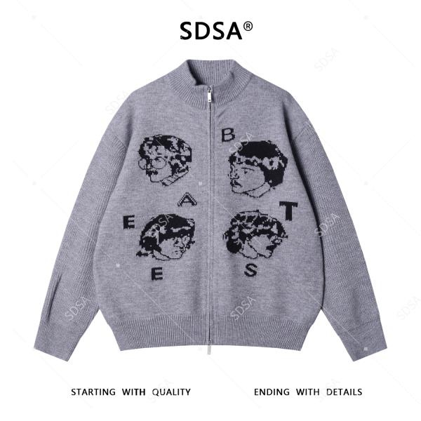 72625SDSA男士秋冬新款痞帅男装潮牌美式人物字母设计拉链立领毛衣百搭