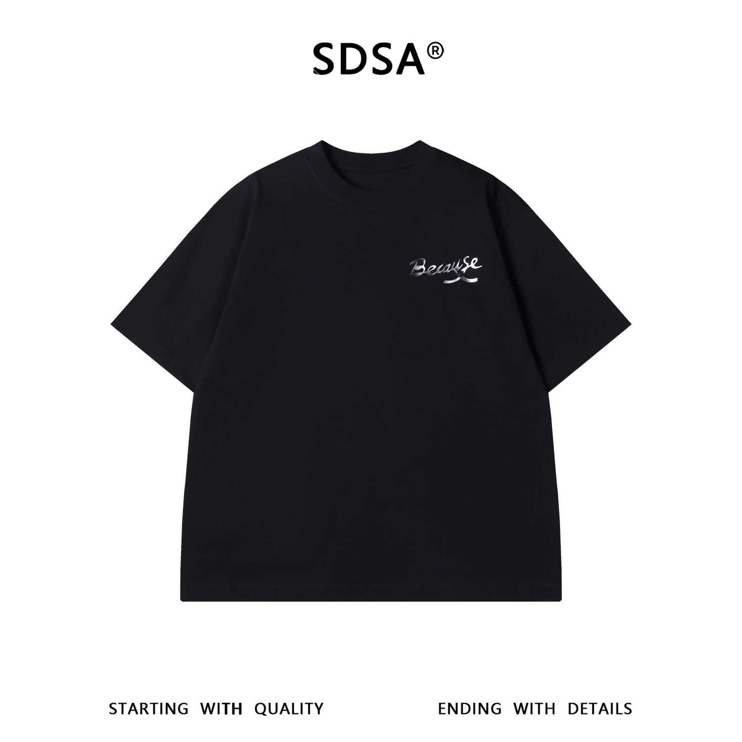 SDSA男装2026新款金属感花体字母印花短袖T恤宽松重磅休闲上衣