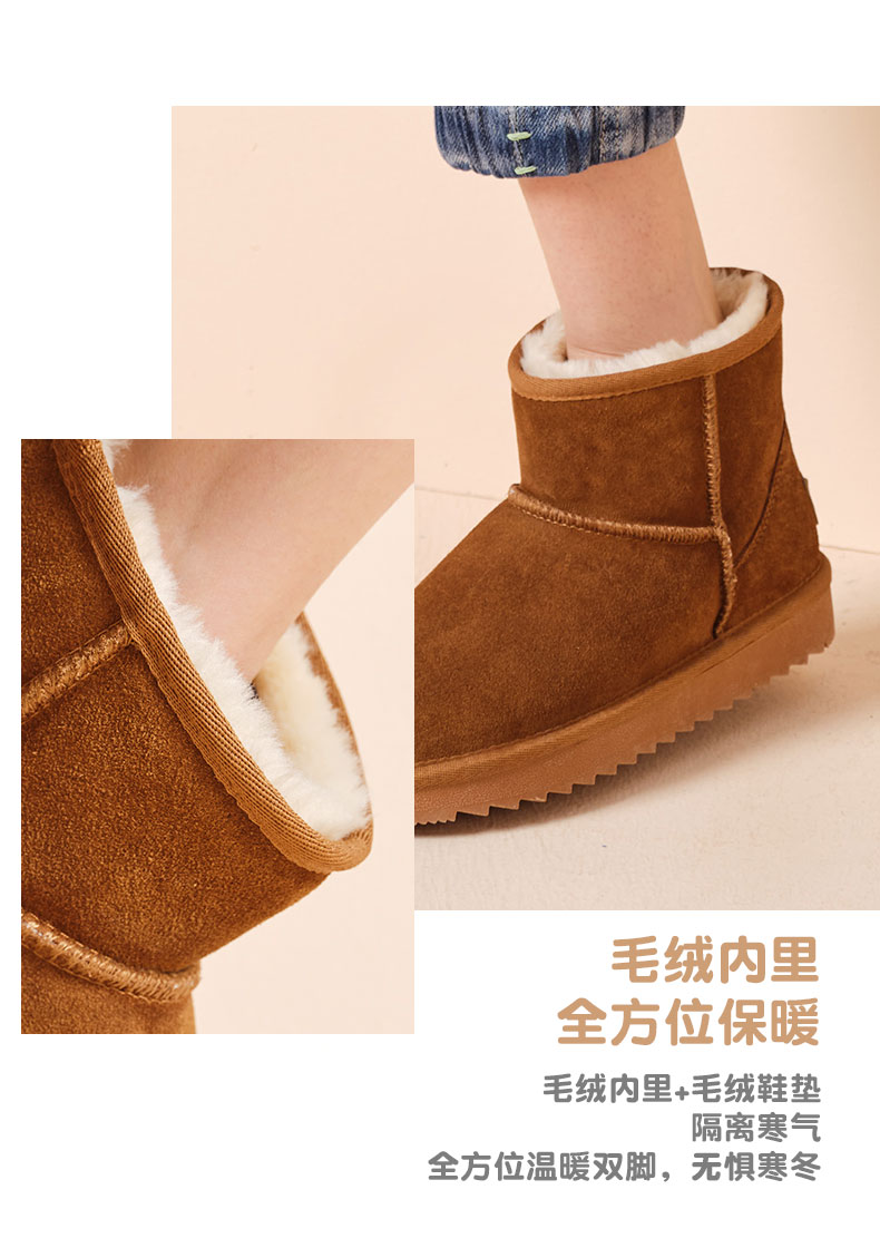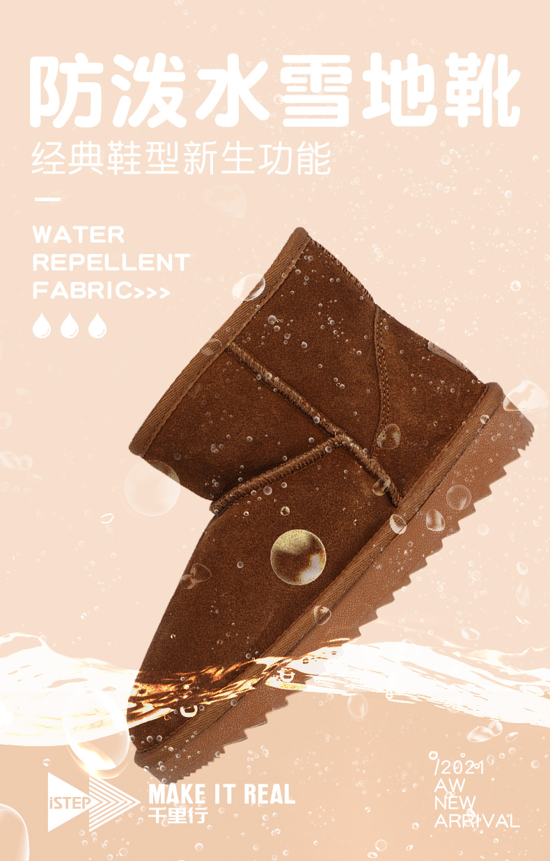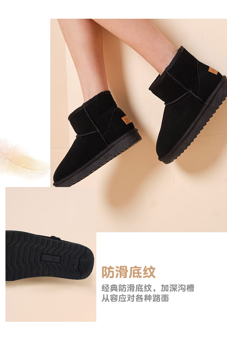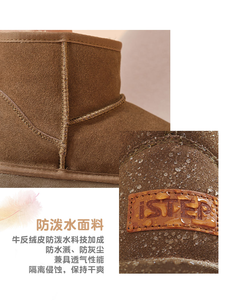 ISTEP冬季女士雪地靴加绒加厚保暖舒适皮毛一体平底棉鞋中筒女靴