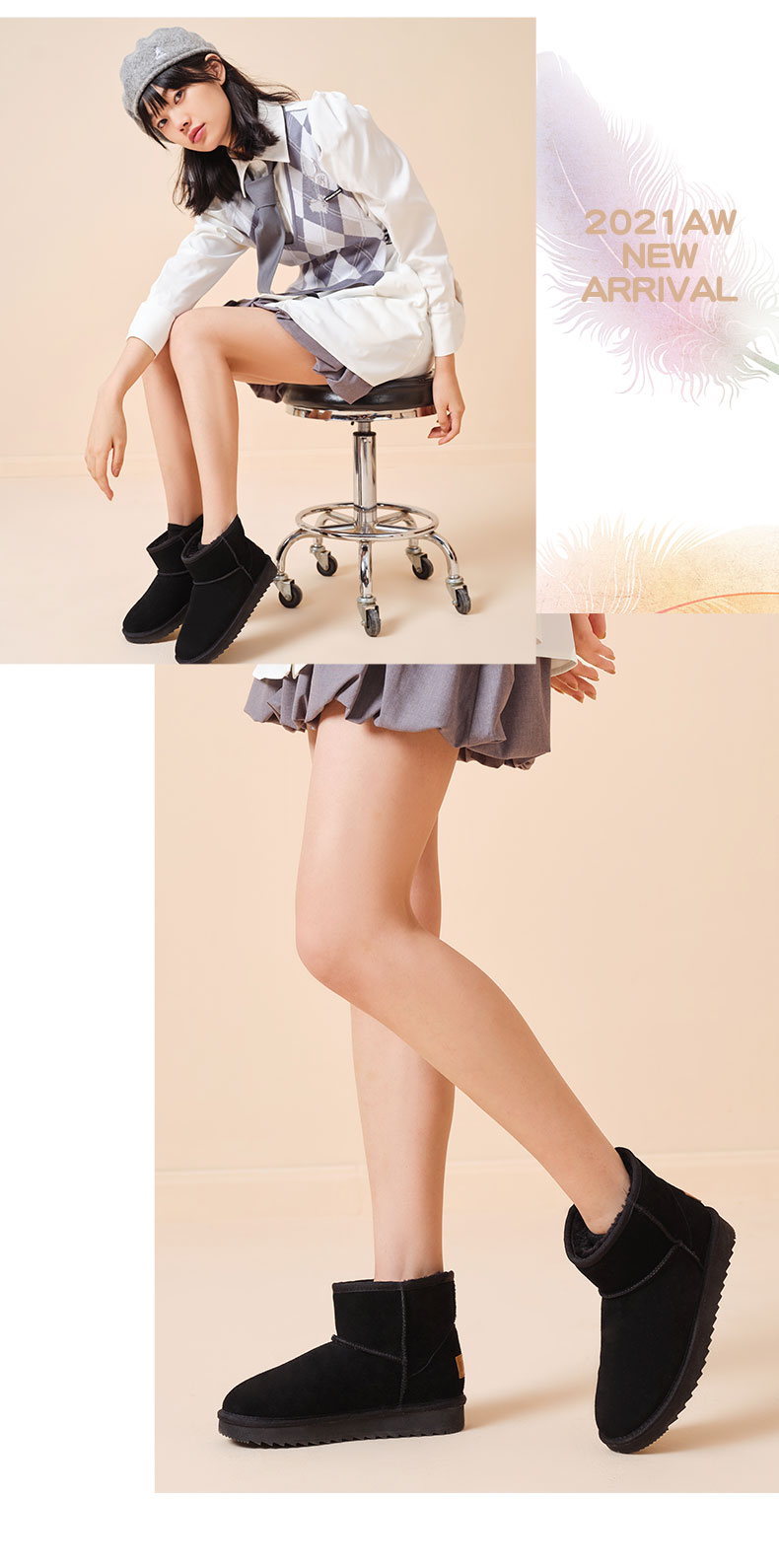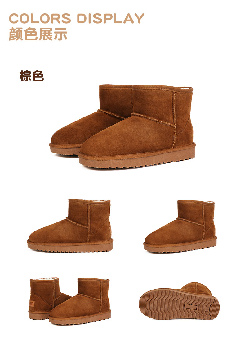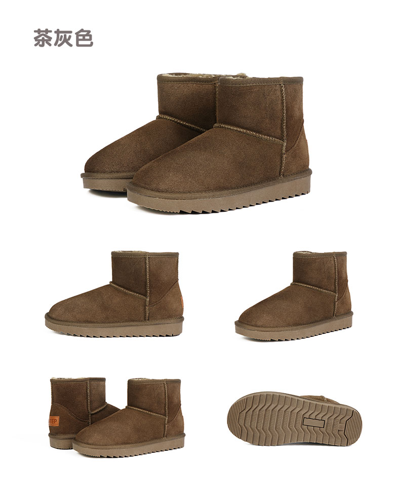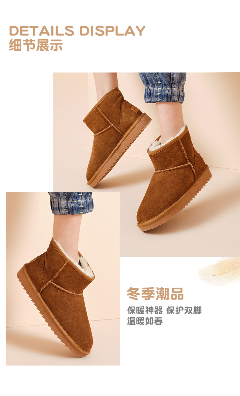 ISTEP冬季女士雪地靴加绒加厚保暖舒适皮毛一体平底棉鞋中筒女靴