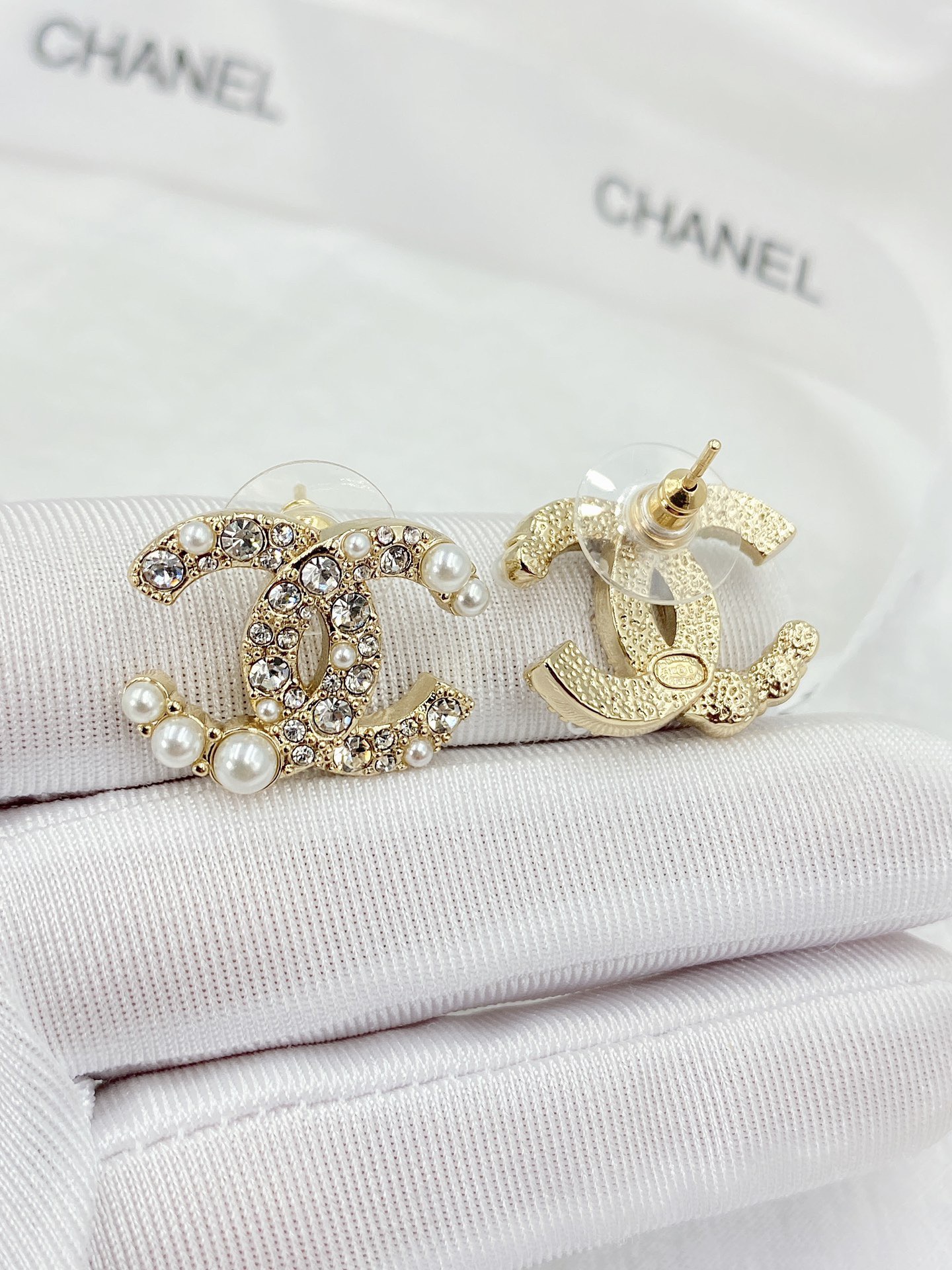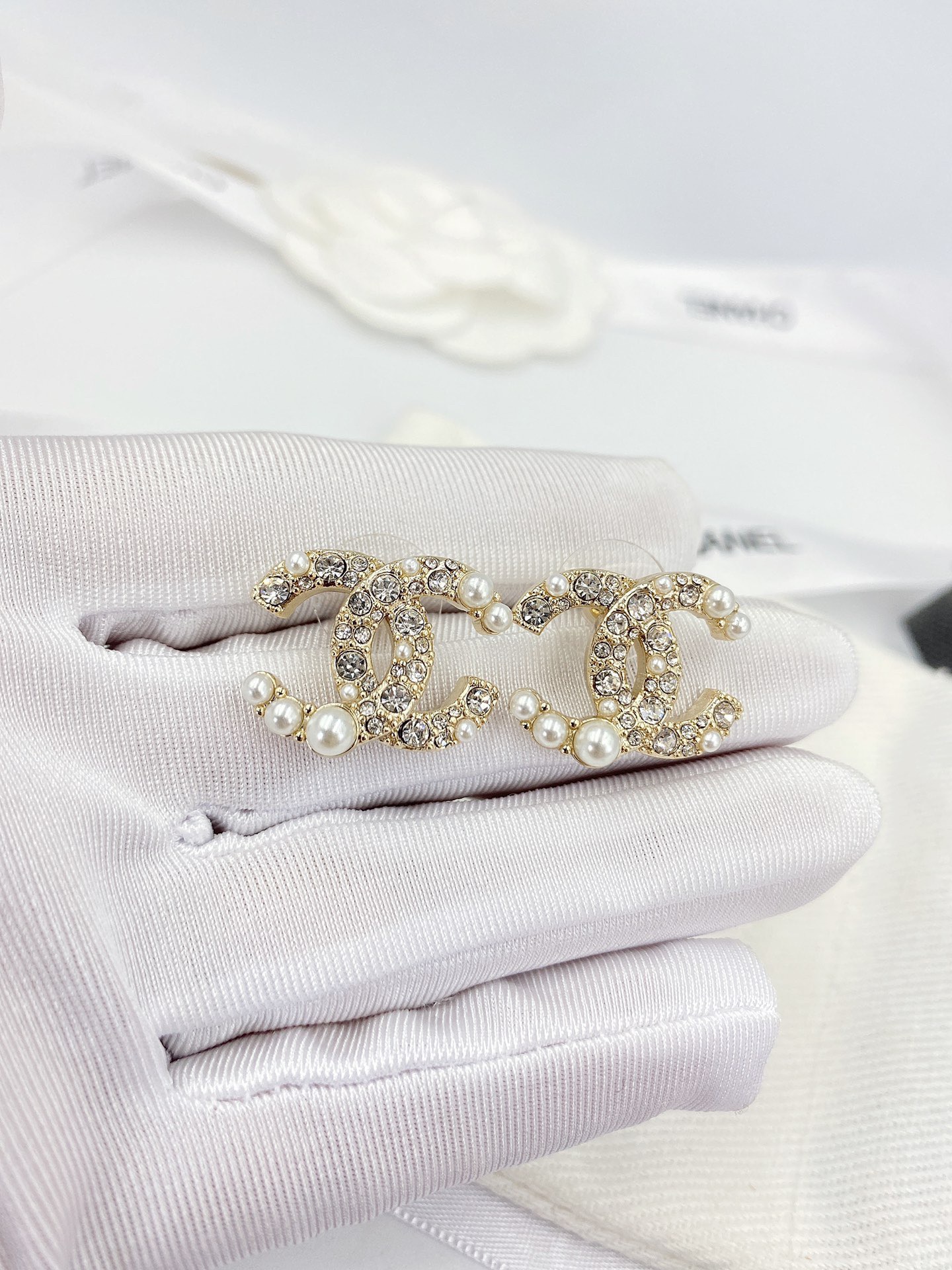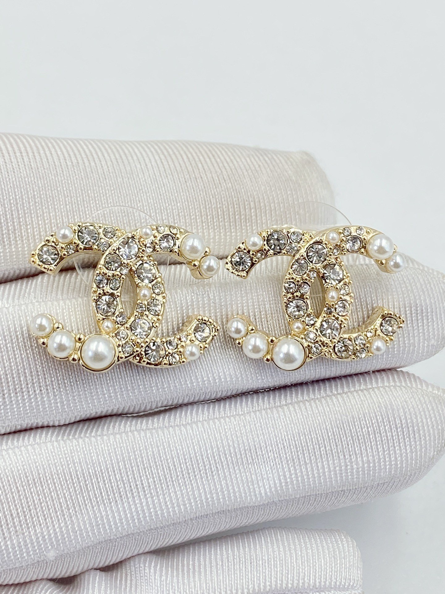 小香 新款 双c半珍珠半钻耳钉,高端品质,同材质,真正黄铜,离子电镀,925银针,独家实拍图做工精致细腻,重工版本,超级仙女唯美的一款,做工超级细心无漏洞,媲美zp买到就是赚到实拍展示