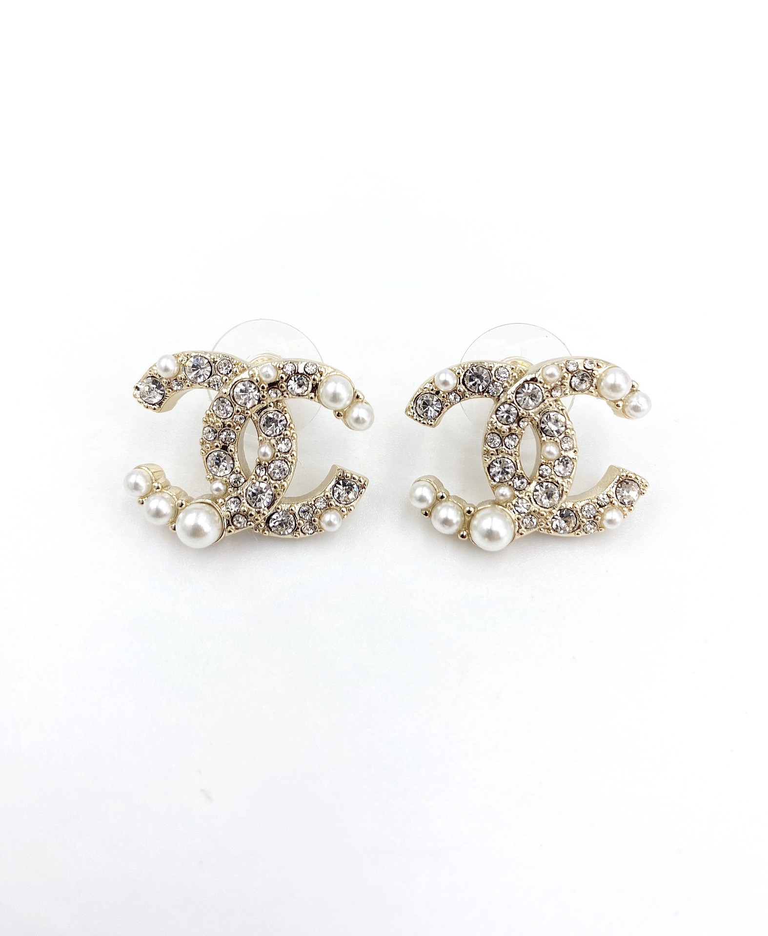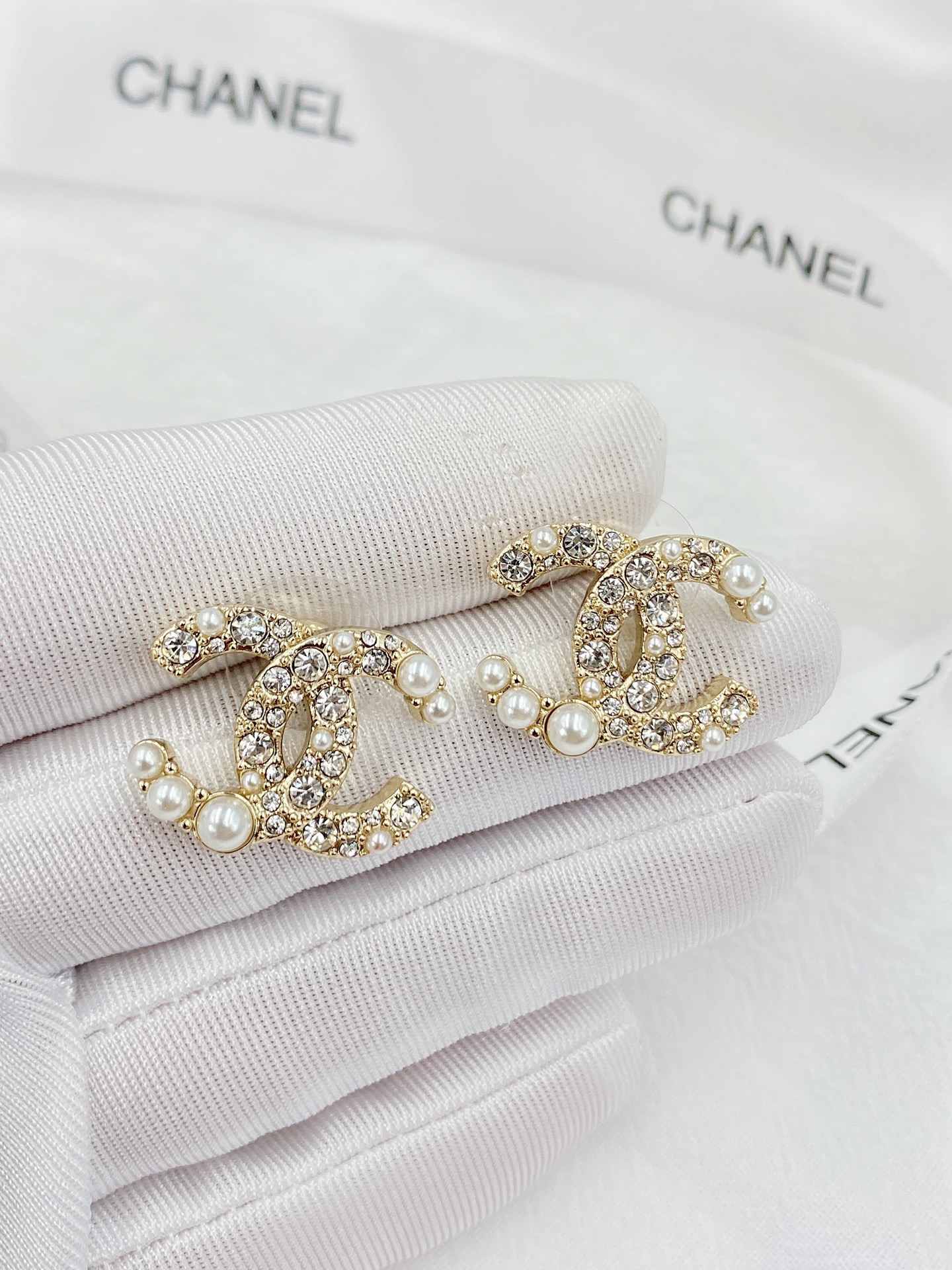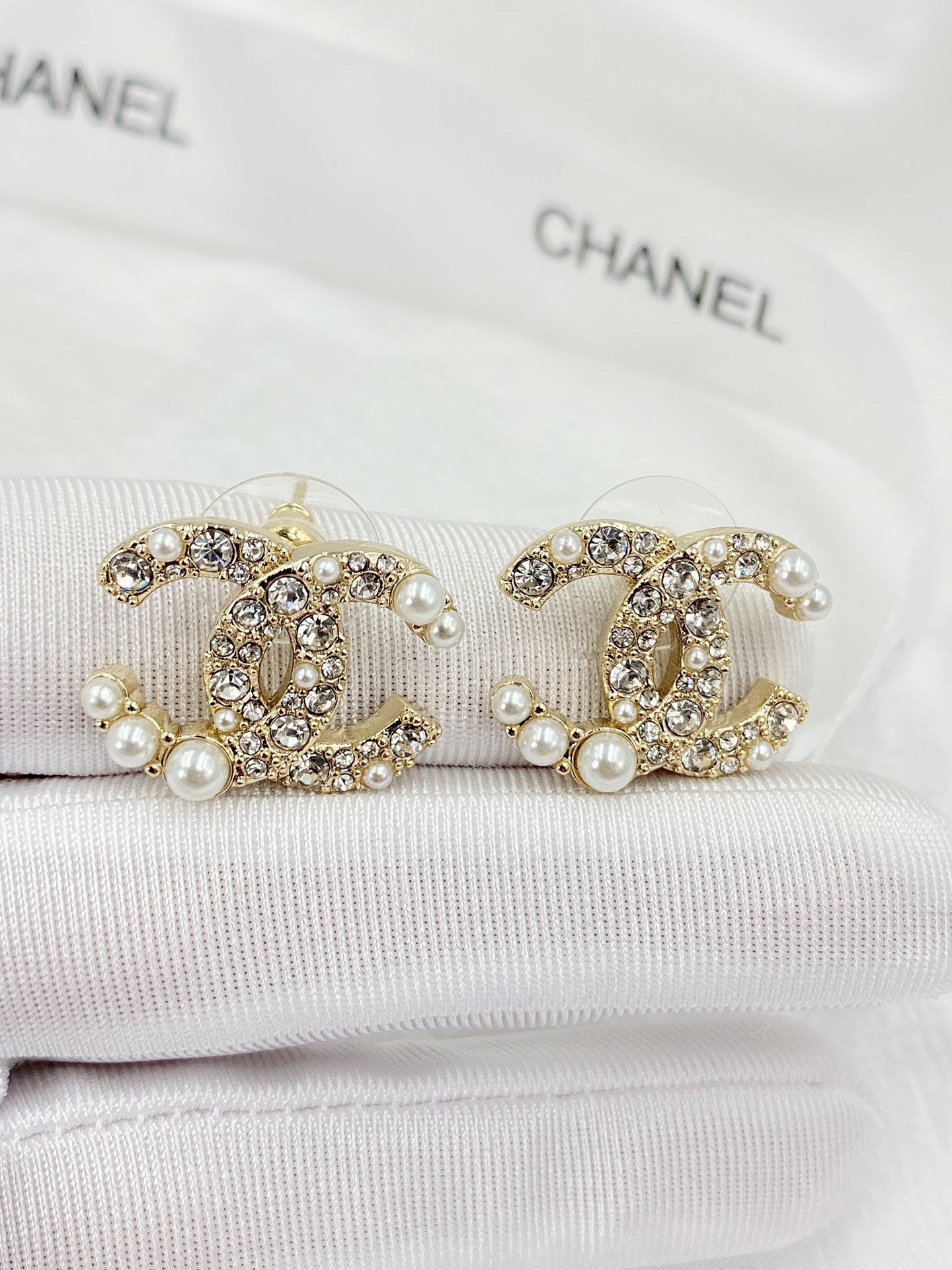 小香 新款 双c半珍珠半钻耳钉,高端品质,同材质,真正黄铜,离子电镀,925银针,独家实拍图做工精致细腻,重工版本,超级仙女唯美的一款,做工超级细心无漏洞,媲美zp买到就是赚到实拍展示
