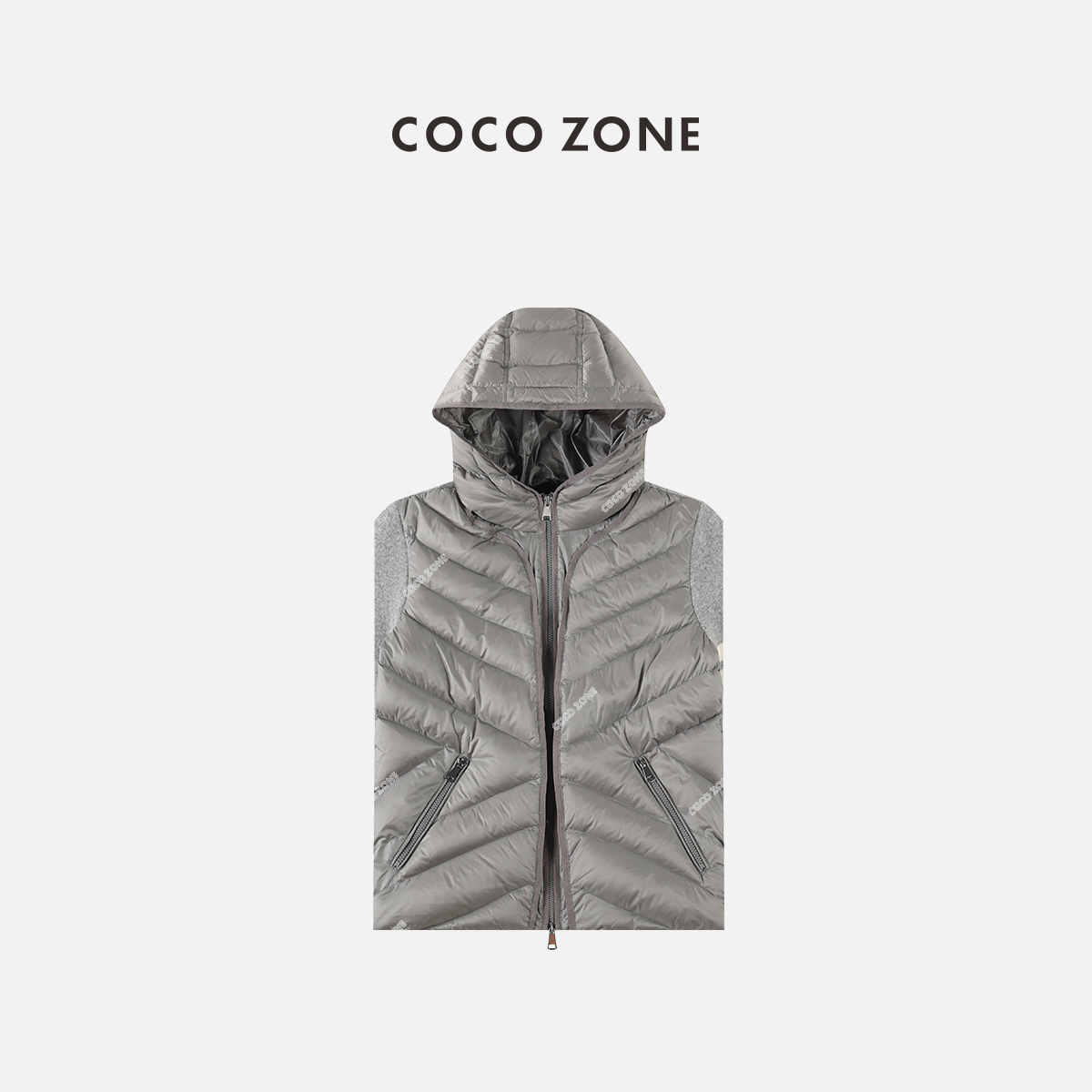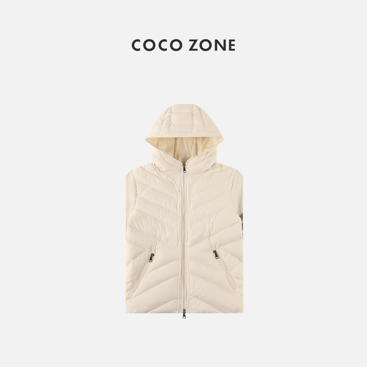 COCO ZONE 90鹅绒春秋针织羊毛绒拼接拉链连帽外套23C29748