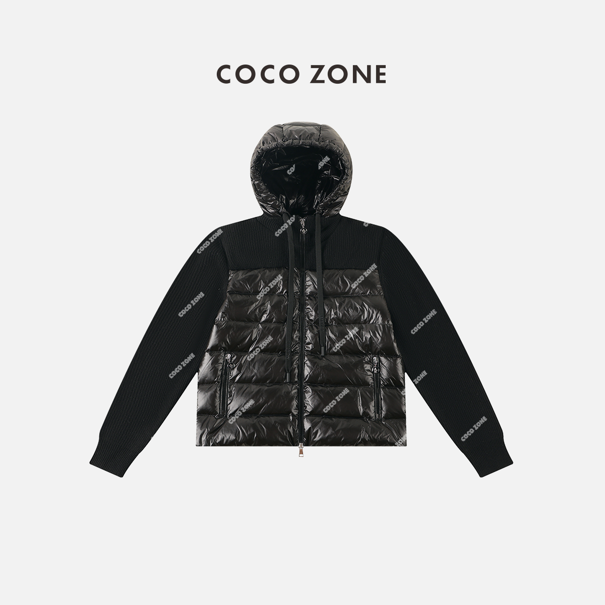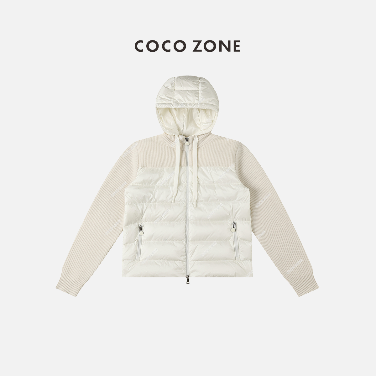 COCO ZONE90鹅绒连帽系绳双头外套针织拼接羽绒服23C29900