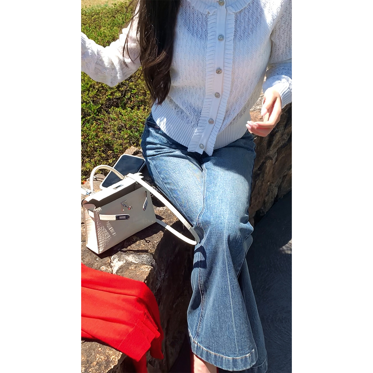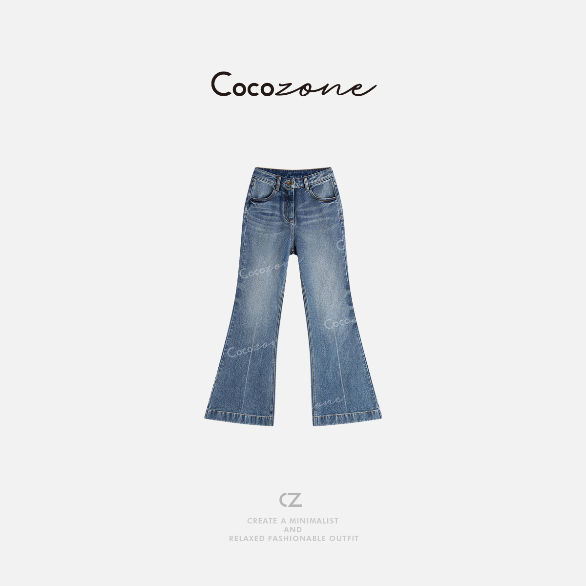 COCO ZONE 2025新款水洗猫须显瘦微喇牛仔裤CD1A0245