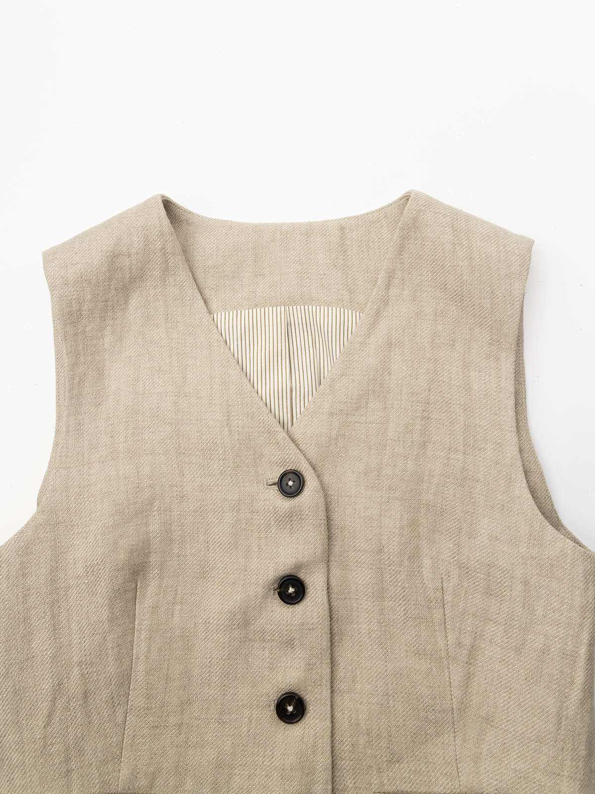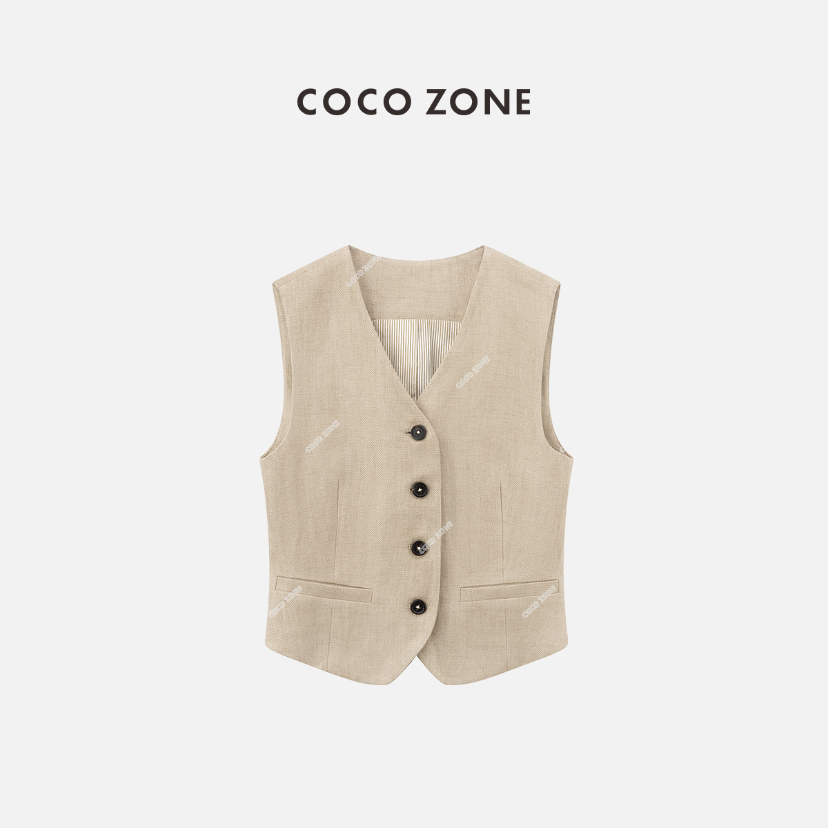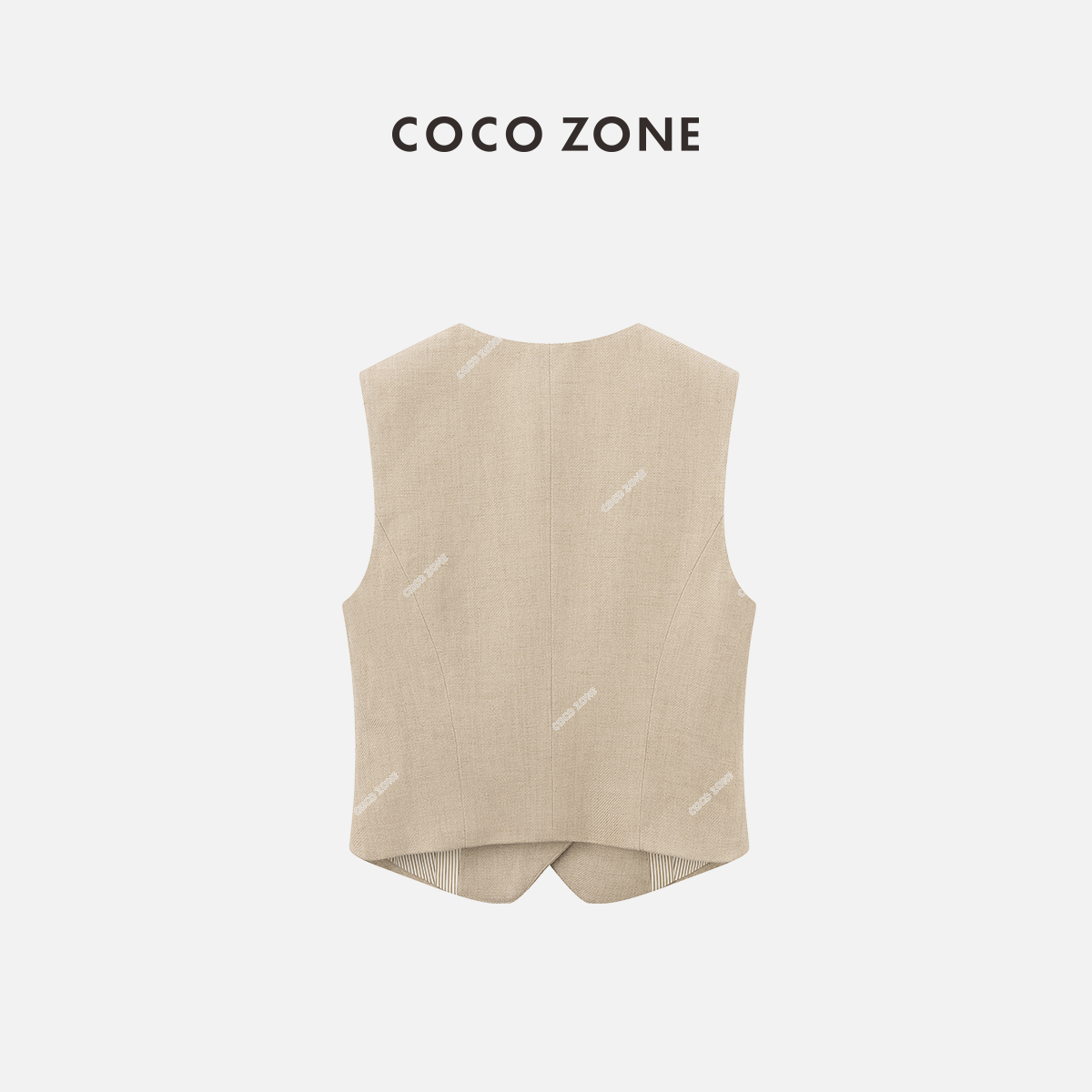 COCO ZONE2024"雪茄马甲”复古设计感V领马夹百搭单排扣无袖上衣CC1B0748