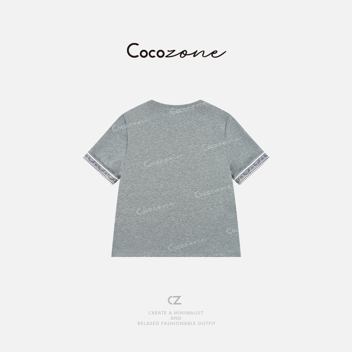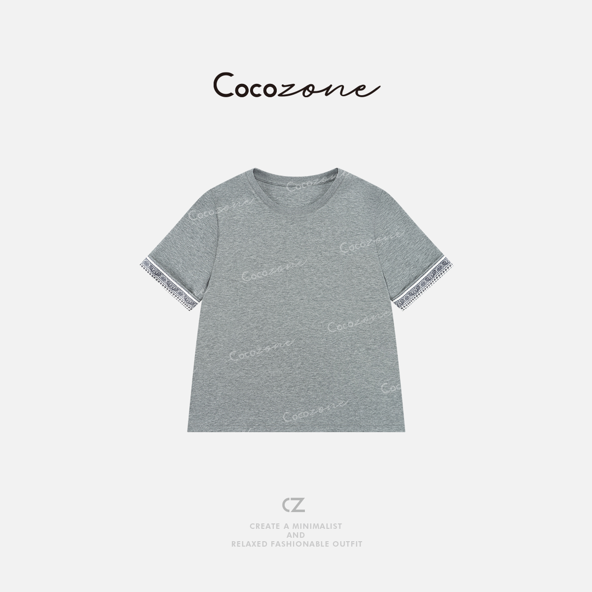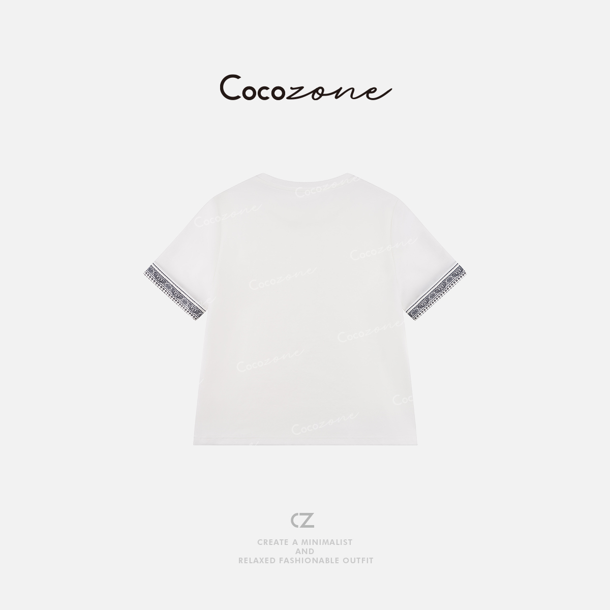 COCO ZONE 刘一一25新款时尚圆领袖口撞色拼接女T恤ACD2A0636
