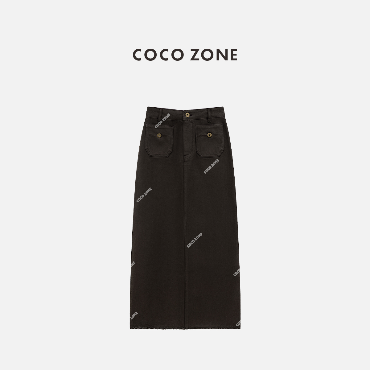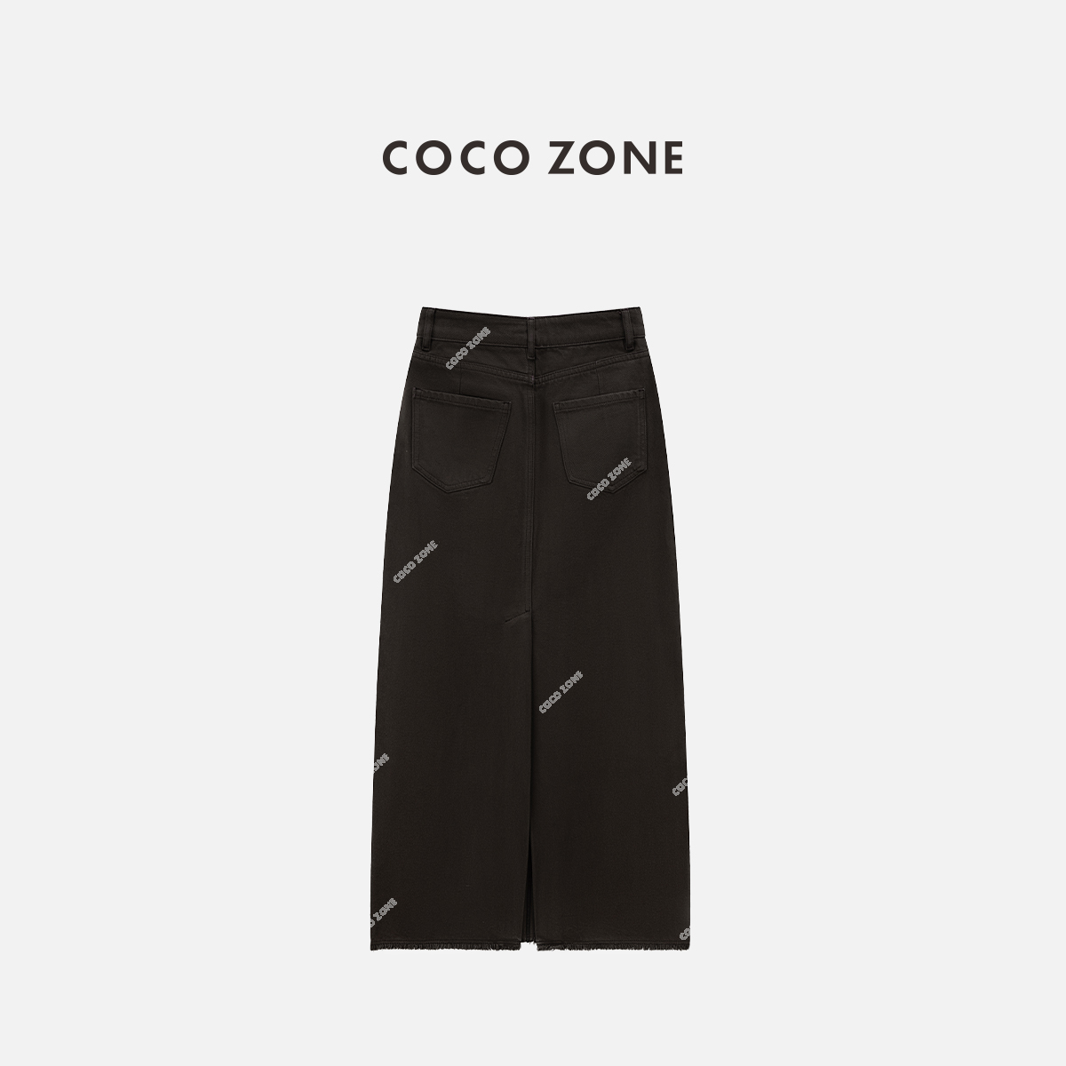 COCO ZONE 100棉毛边牛仔半裙气质显瘦A字裙CC1B1441