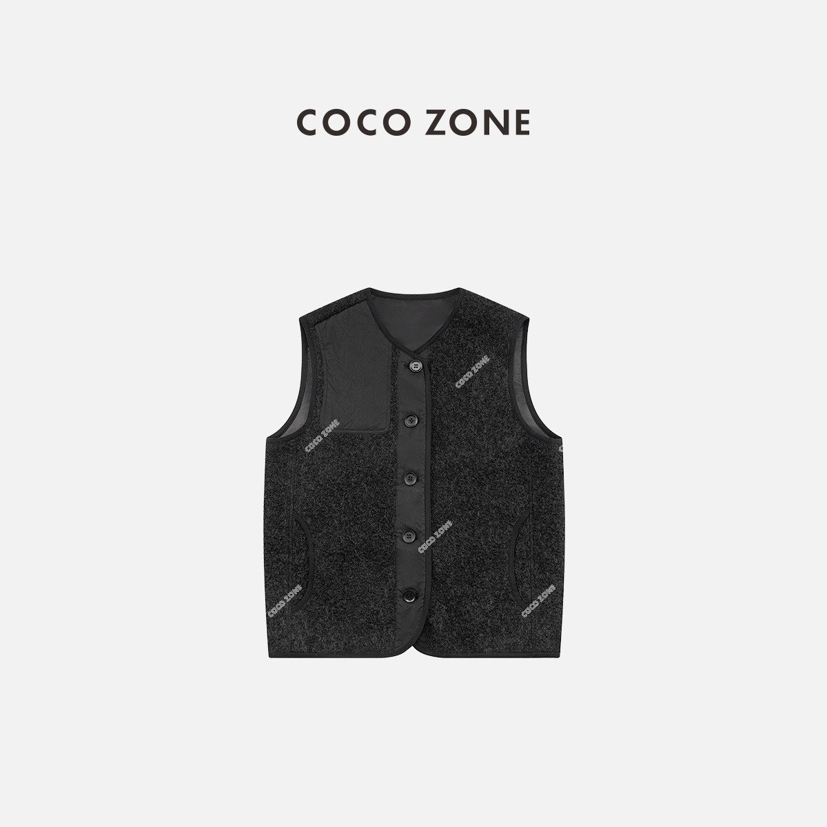 COCO ZONE 设计感拼接V领马甲小众无袖上衣CC2C2329