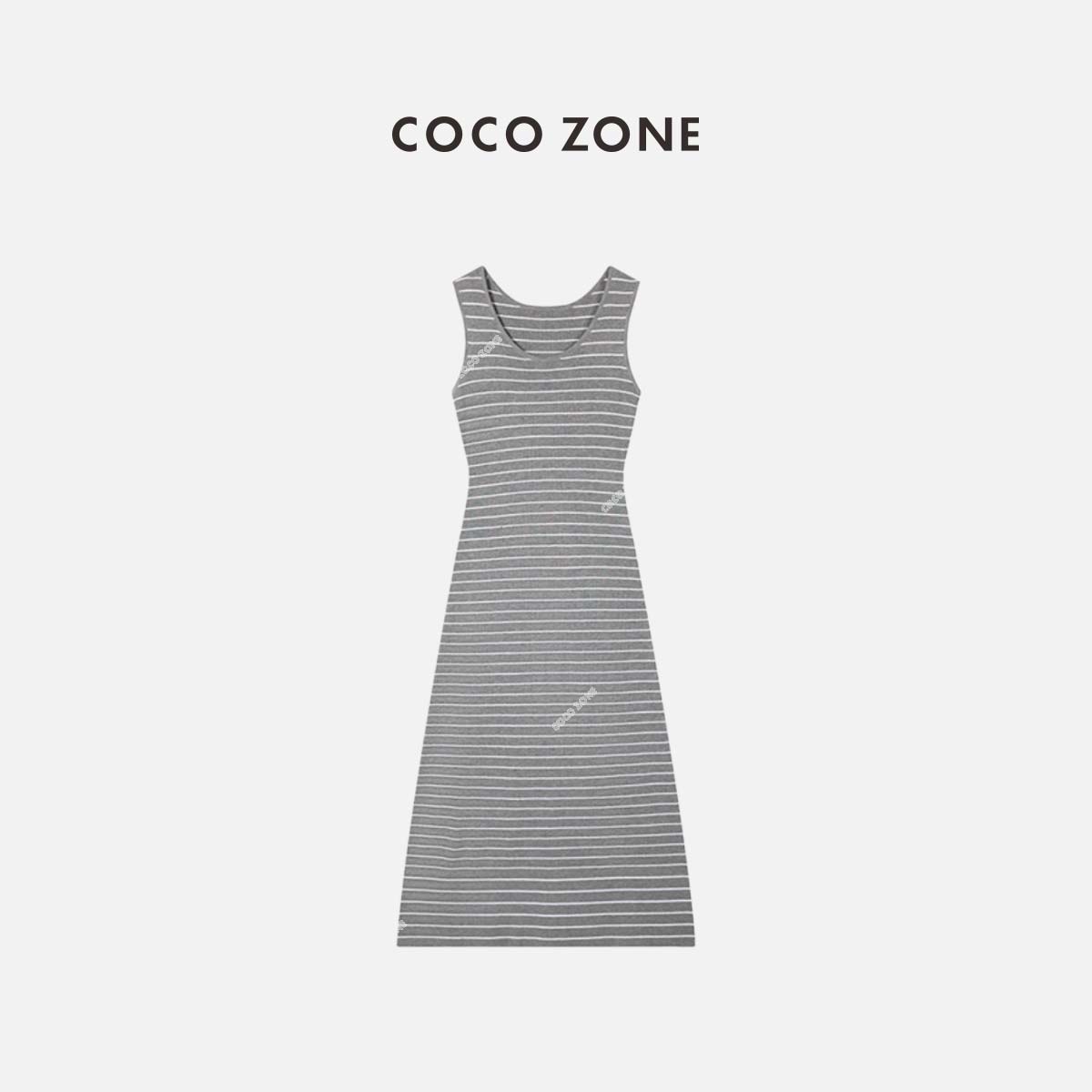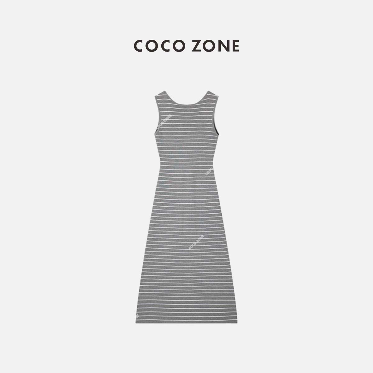 COCO ZONE 新款夏季a字中长裙条纹修身无袖连衣裙 23C18303