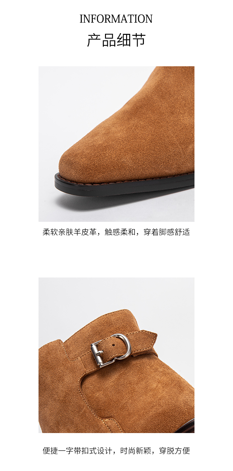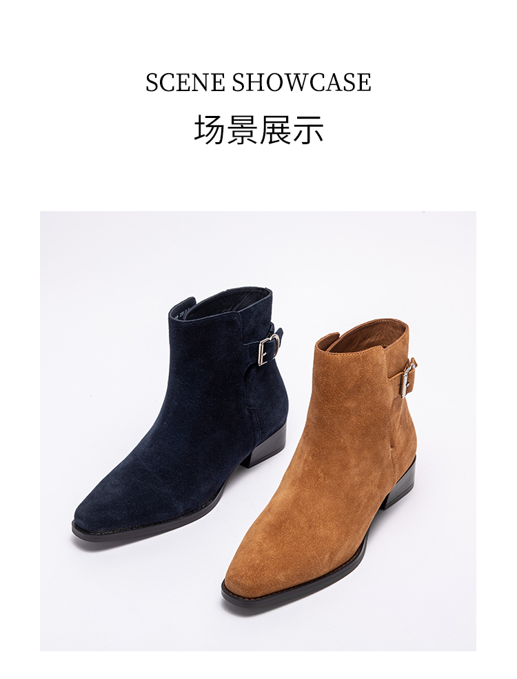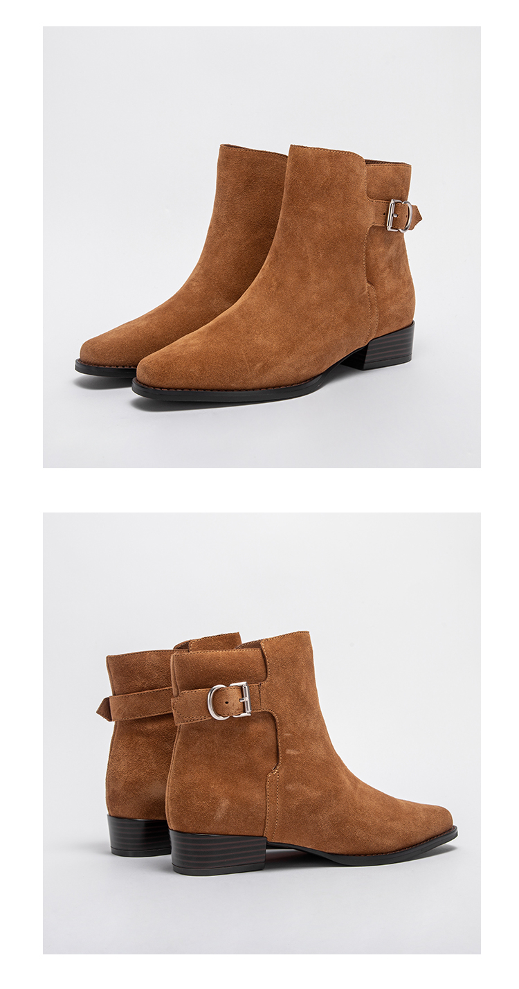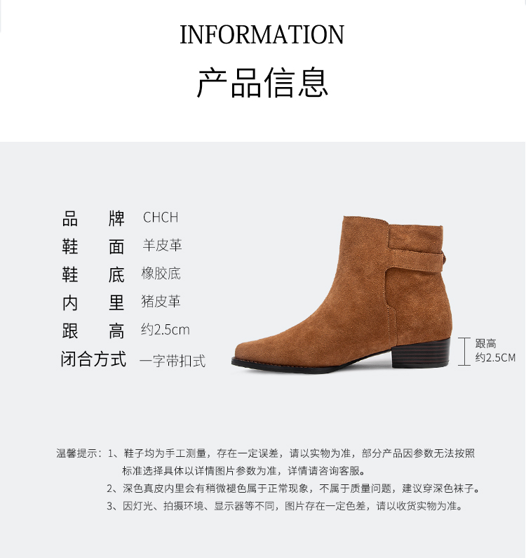 CHCH平衡鞋2024秋冬新品羊皮绒面矮跟英伦风百搭女短靴CO2B6081