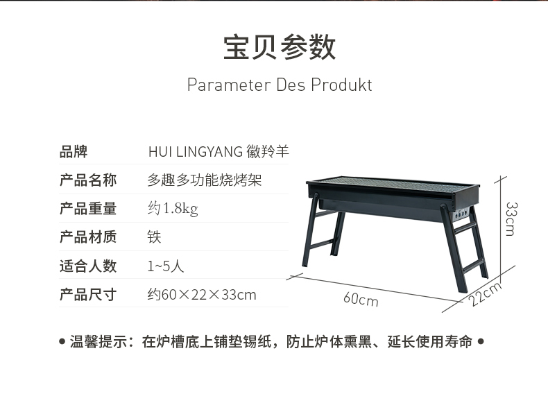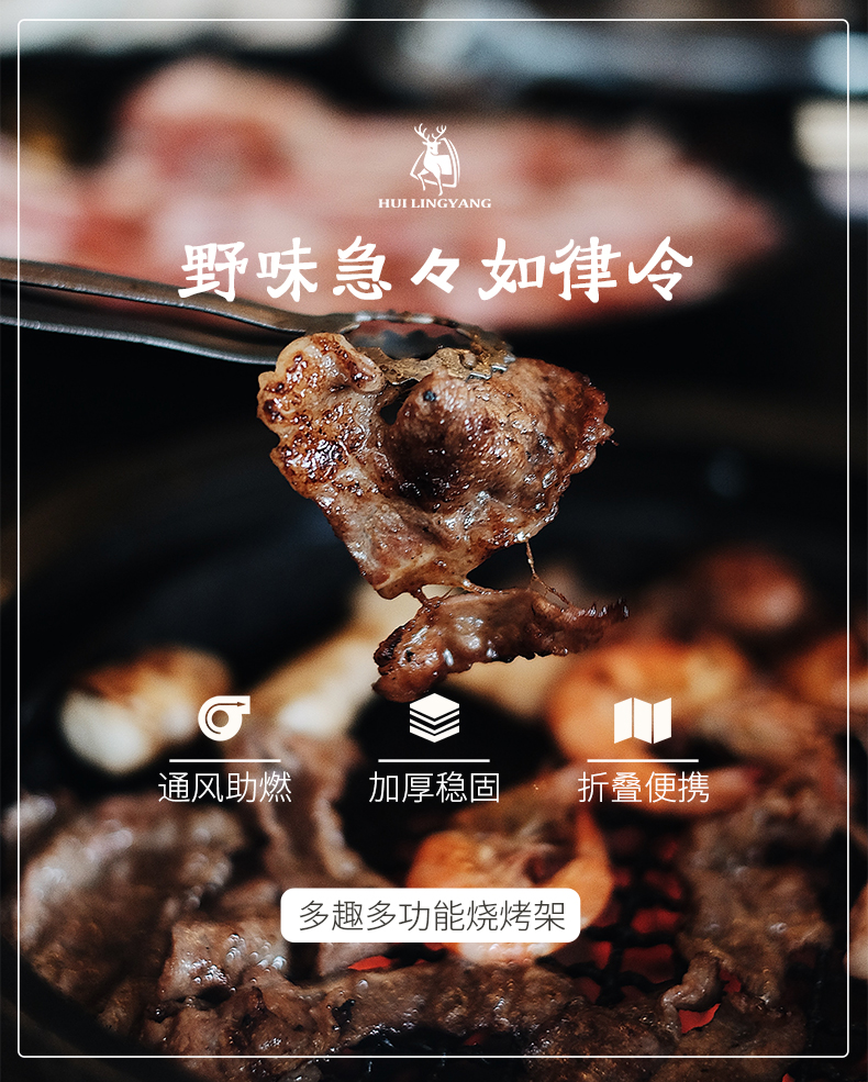 徽羚羊 户外折叠轻便中型烧烤炉烧烤架 烤架尺寸60*22*33