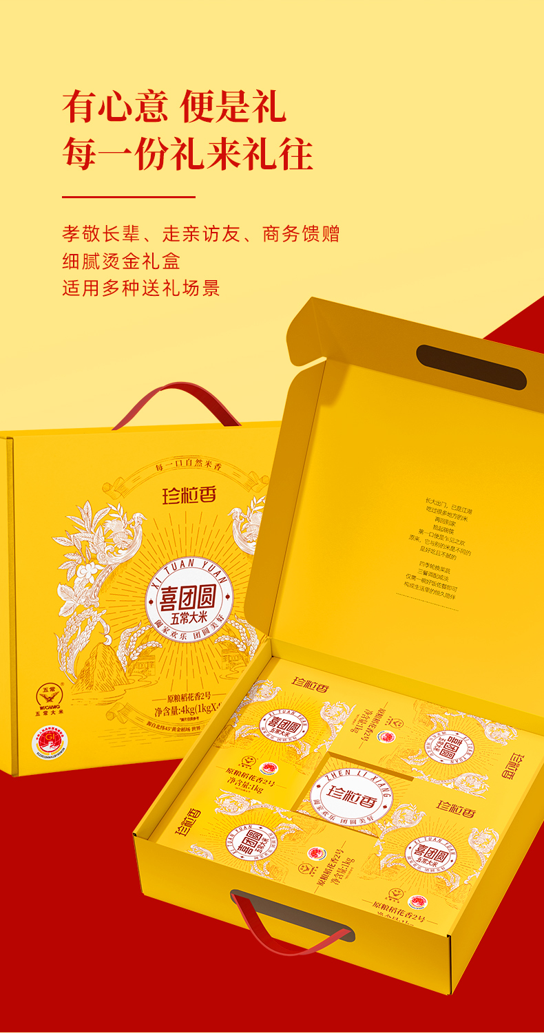 珍粒香喜团圆五常大米4kg礼盒