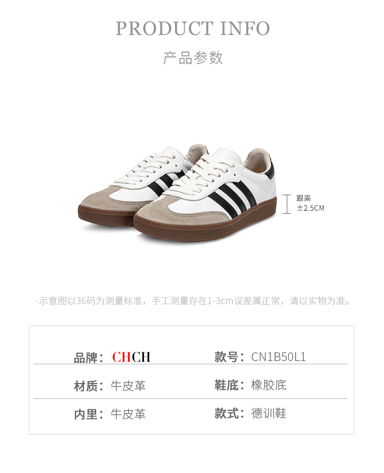 CHCH复古德训鞋真牛皮舒适运动休闲百搭年轻时尚女鞋平衡鞋