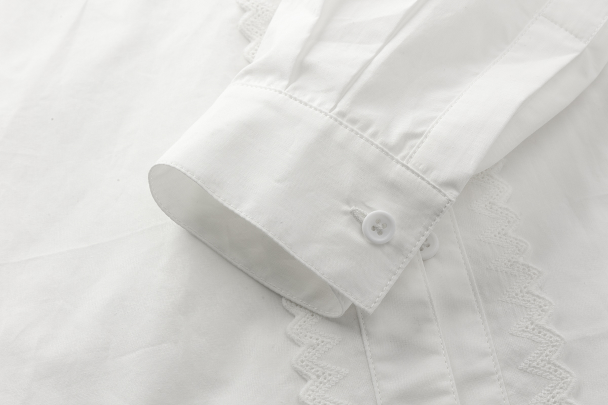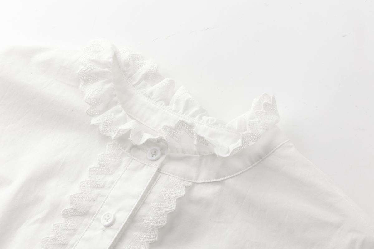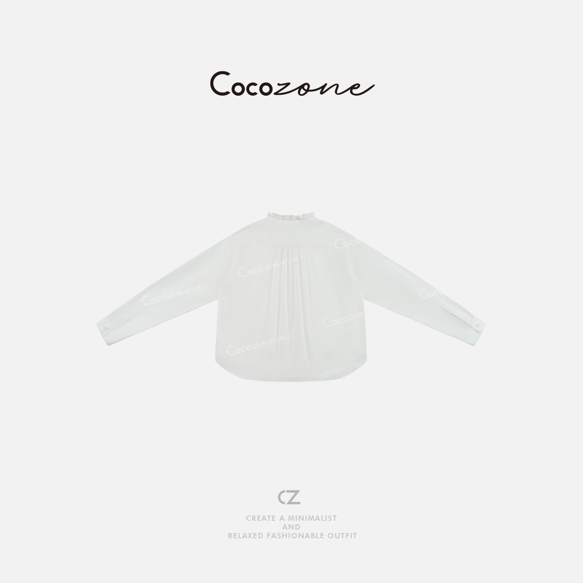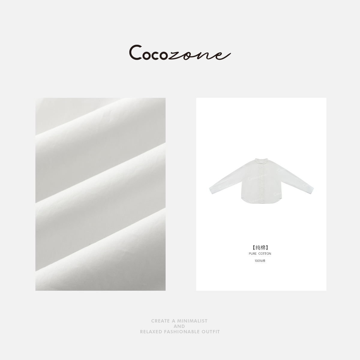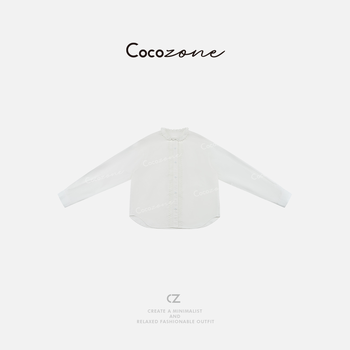 COCO ZONE 100棉春季法式花边立领单排扣衬衫ACD1A0197